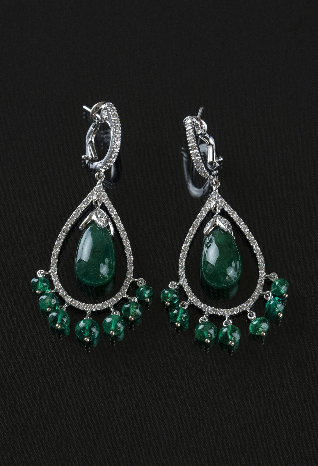 [Nessun Autore] Un paio di orecchini in oro bianco gr 10.60 e diamanti per 2 cts approssimativamente e smeraldi per 8/9 cts. . -. .