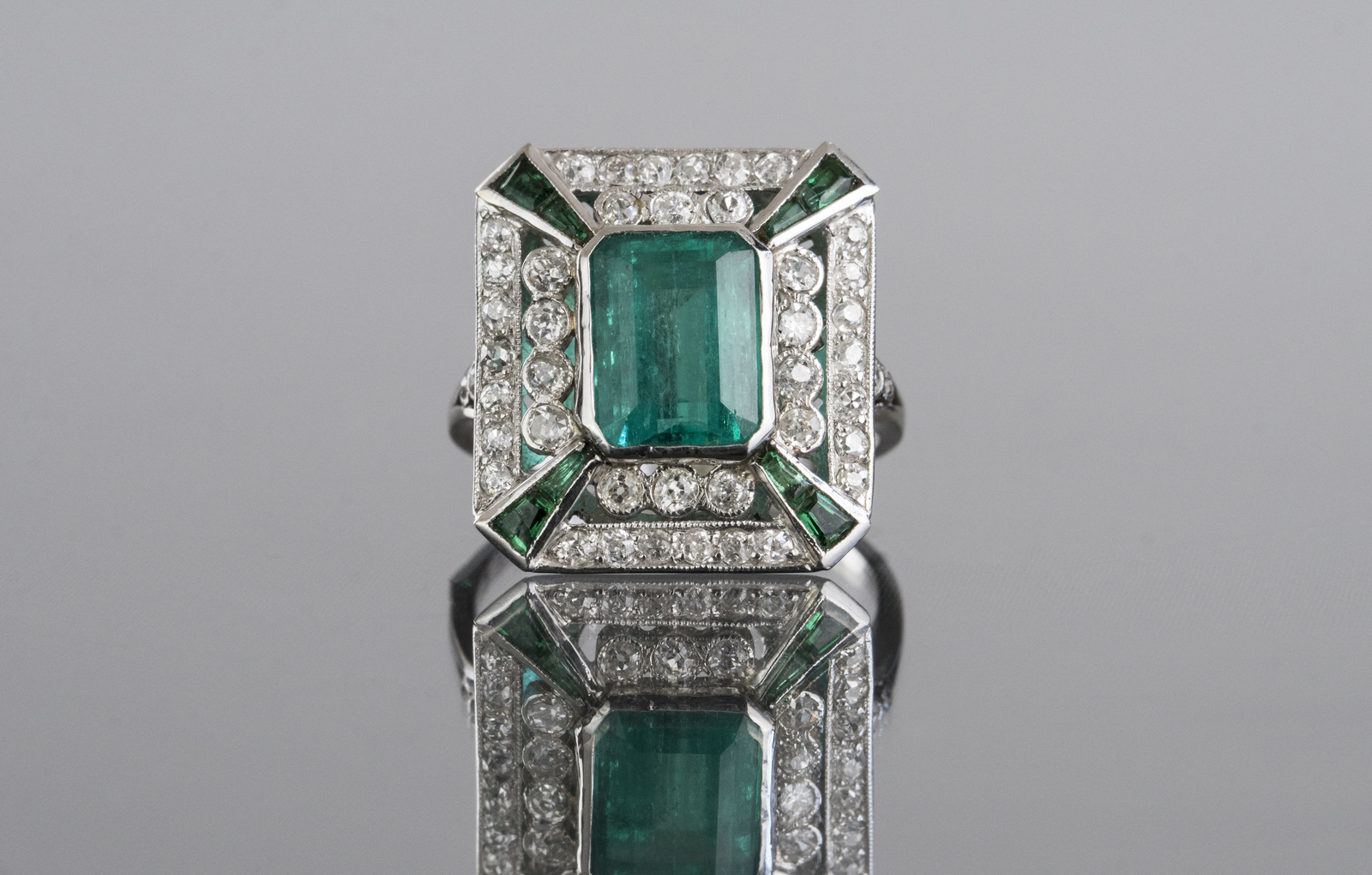 Lotto 102 | [Nessun Autore] Anello in oro bianco gr 6.30 con smeraldo cts 2.65 brillanti...