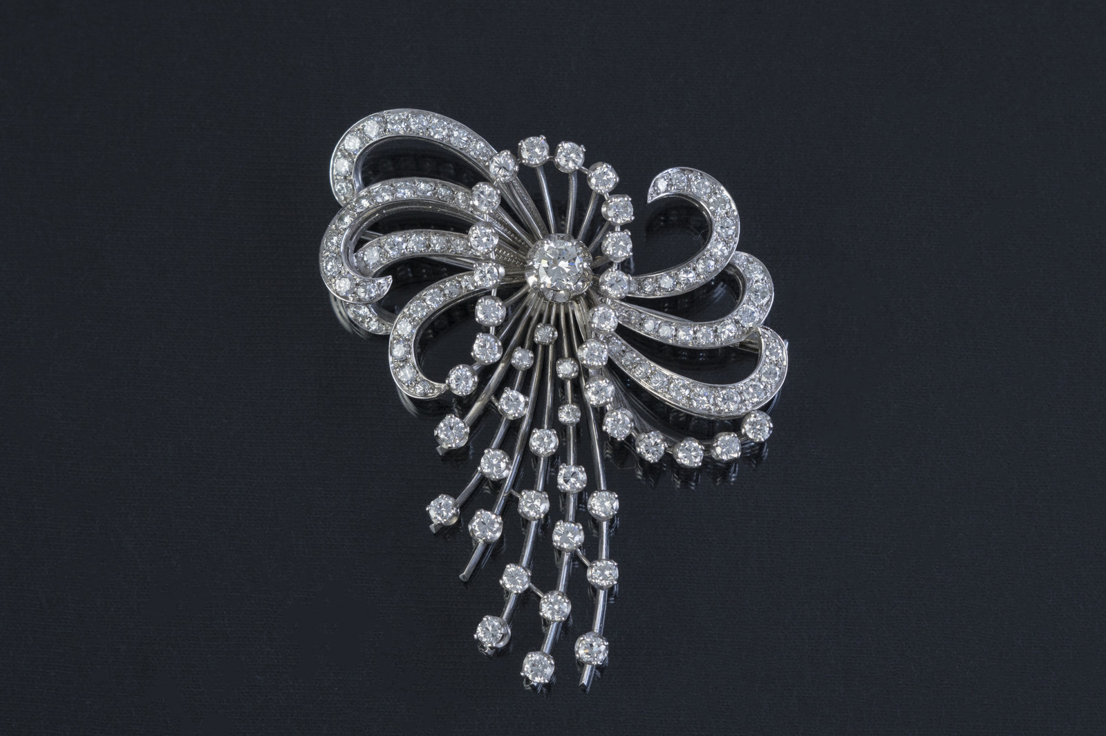 [Nessun Autore] Spilla in oro bianco gr 35.10 con diamanti cts 4.20 circa. . -. .