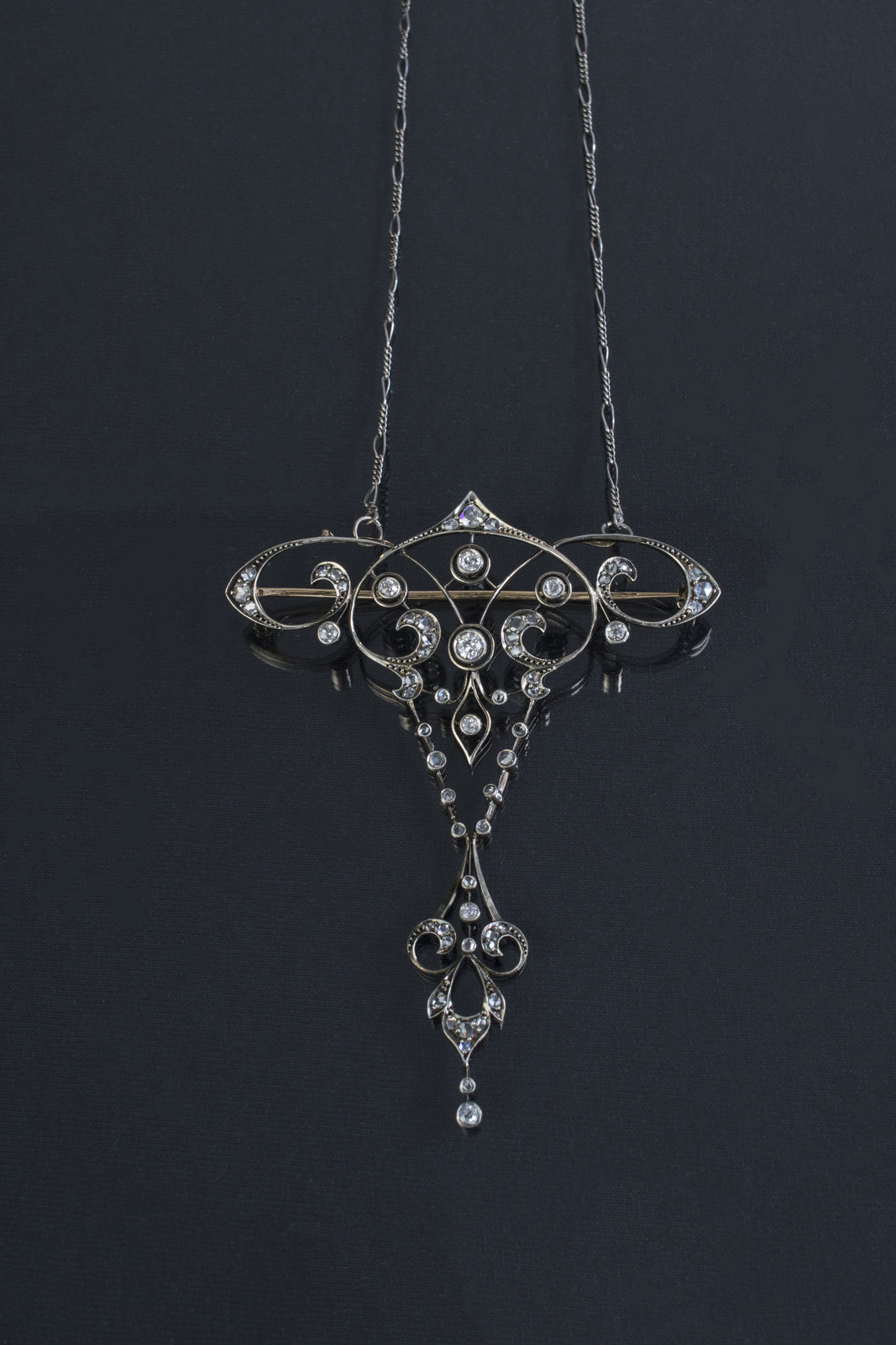 [Nessun Autore] Collier oro e argento diamanti cts 1.5 circa gr 14.72. -. .