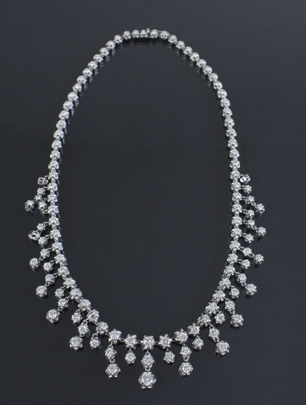 [Nessun Autore] Collana in oro bianco gr 52.50 con diamanti per cts 10.50 circa. . -. .