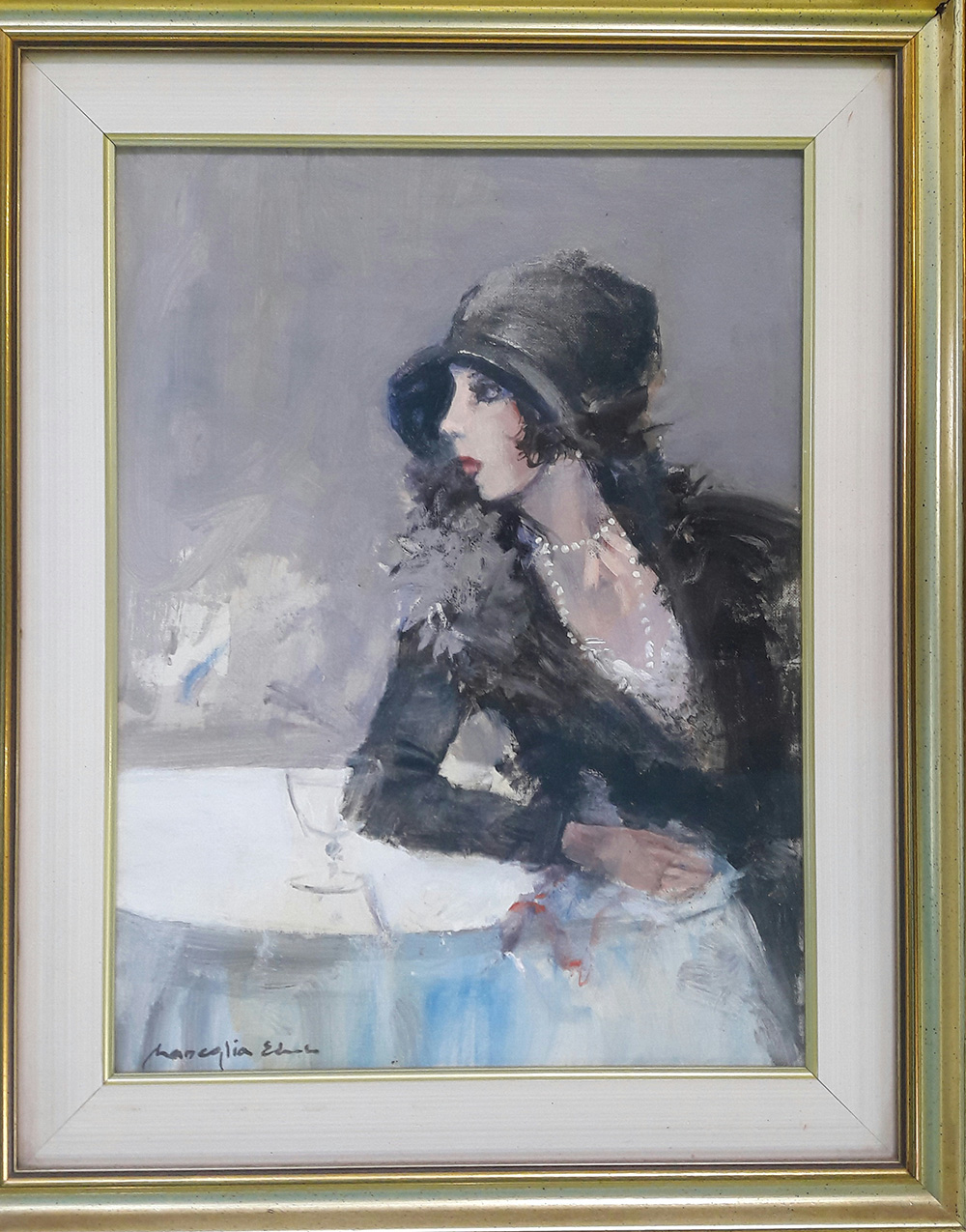 Edmondo Maneglia "Attesa" - Olio su tela applicata su cartoncino - cm 50x40 - Firma dell'artista in basso a sx