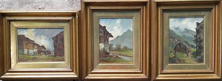 Angelo Forneris "Paesaggi montani" lotto di tre opere - Olio su tavola - cm 16x12 - Firma dell'artista