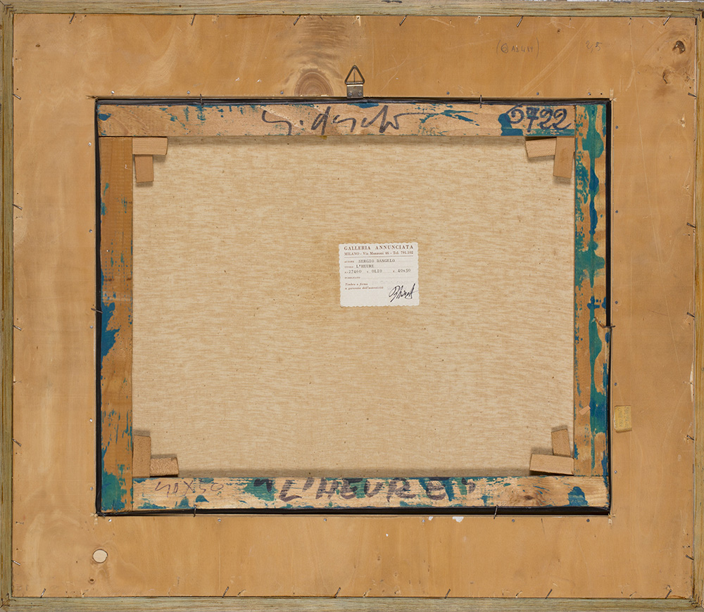 SERGIO DANGELO (1932) L'heure Olio su tela cm 40x50 Firma al fronte Firma e...