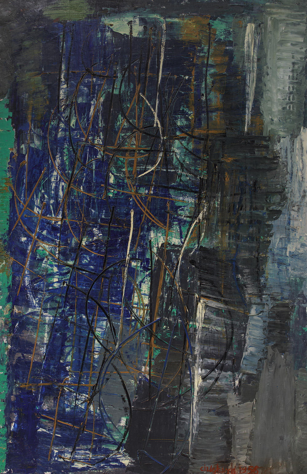 ALFREDO CHIGHINE (1914-1974) Composizione su fondo blu, 1956 Olio su tela cm...