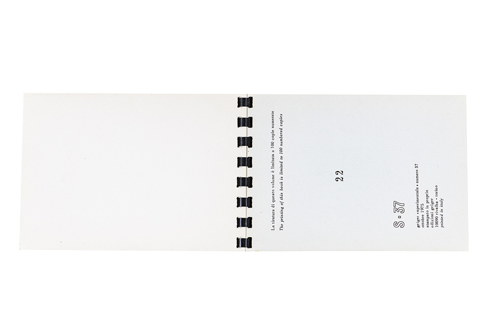 Volume realizzato dalle Edizioni Geiger (TO) in 100 copie numerate (Esemplare 22/100)
