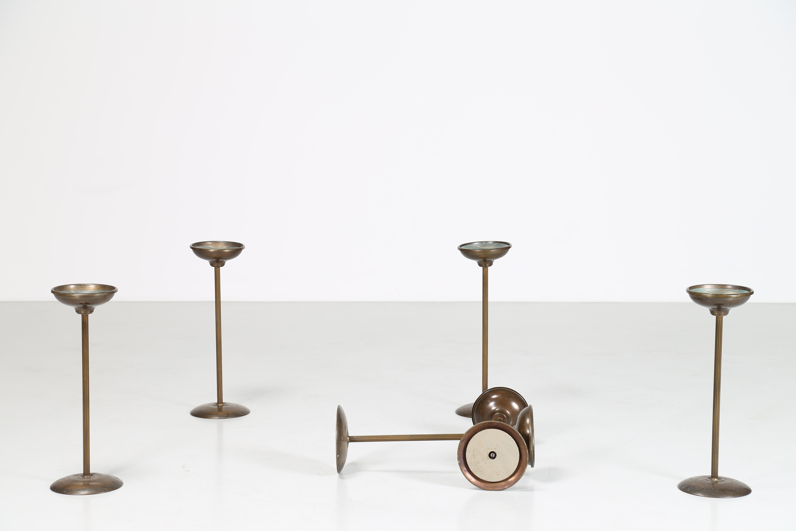 MANIFATTURA ITALIANA Sei posacenere in ottone e vetro, anni 50. -. Cm 19,00 x...