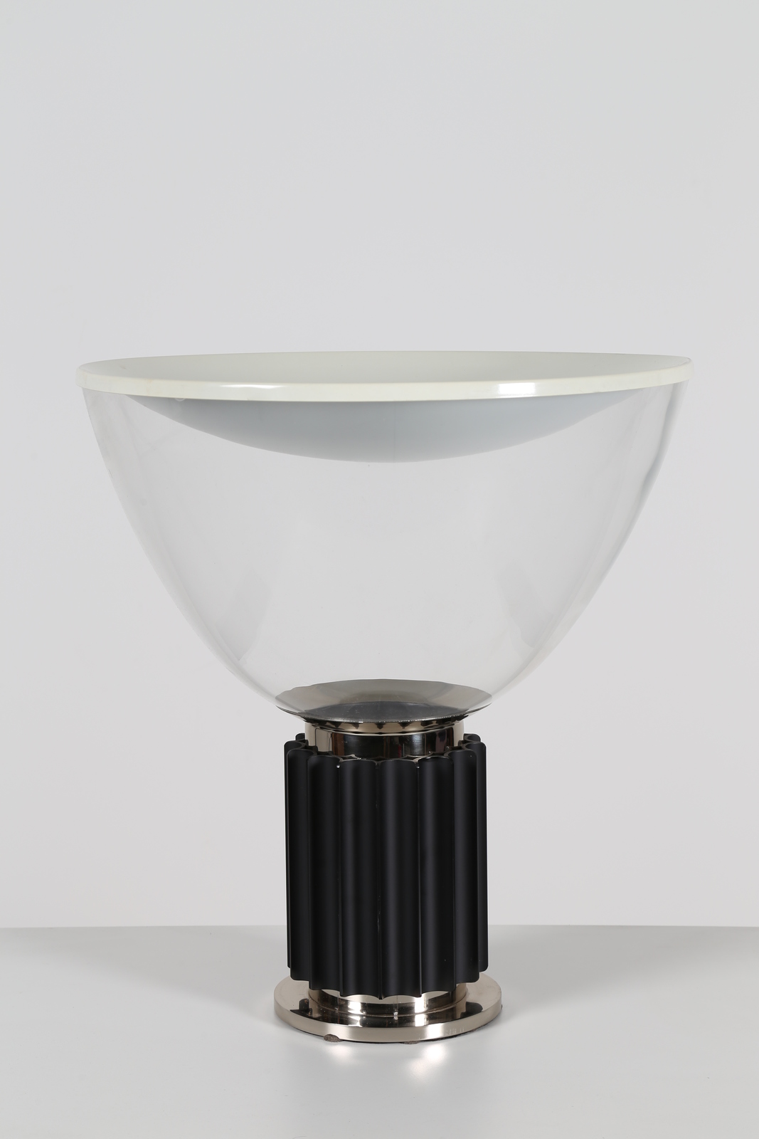 ACHILLE & PIERGIACOMO CASTIGLIONI (1918 - 2002) Metal, aluminum and glass table lamp, mod. Taccia, for Flos, 60’.