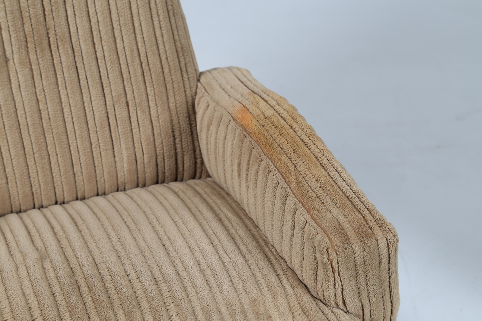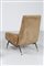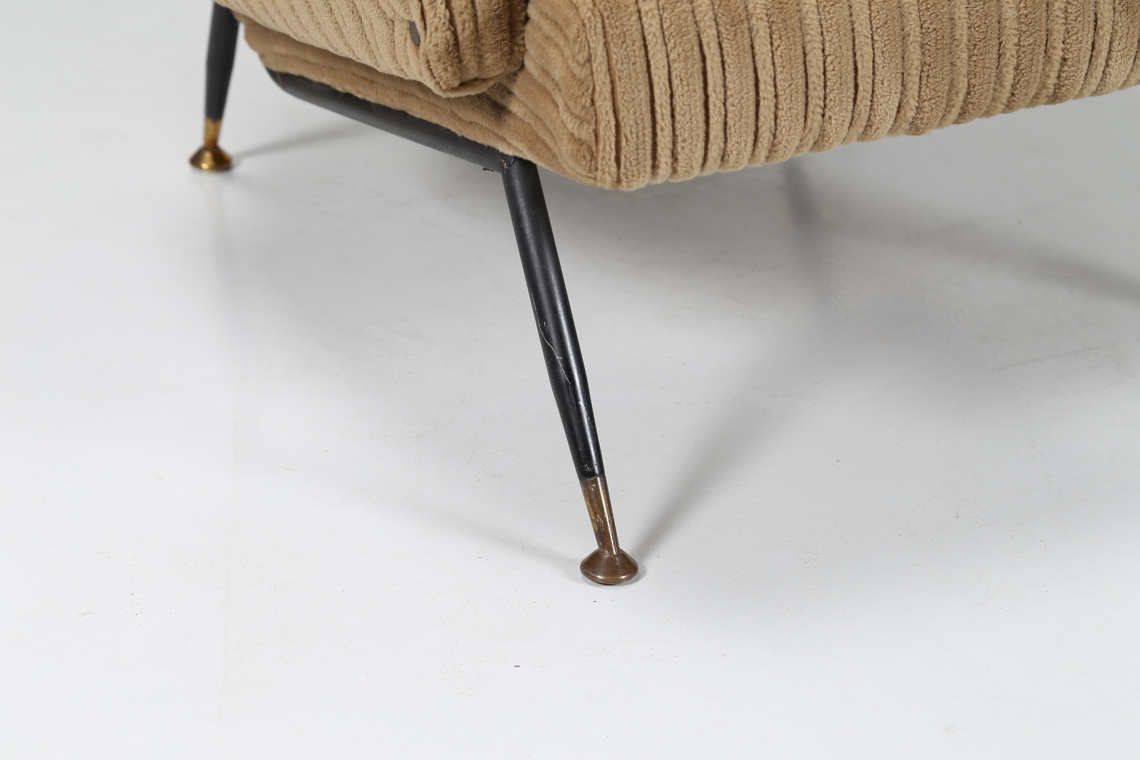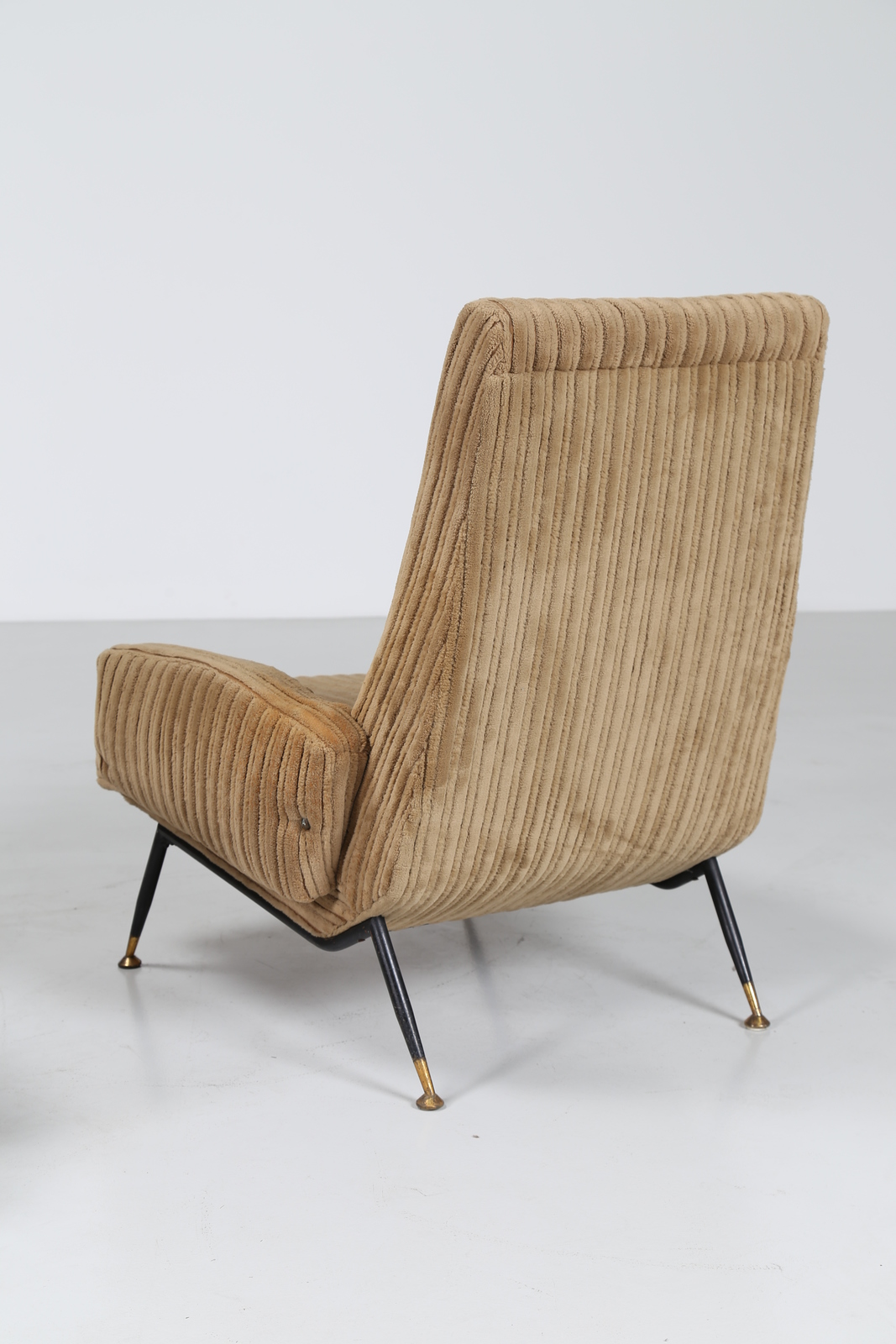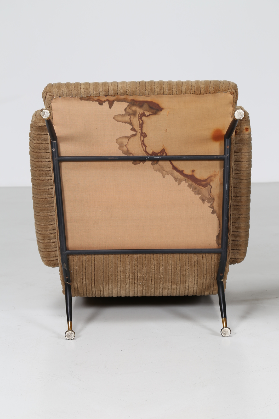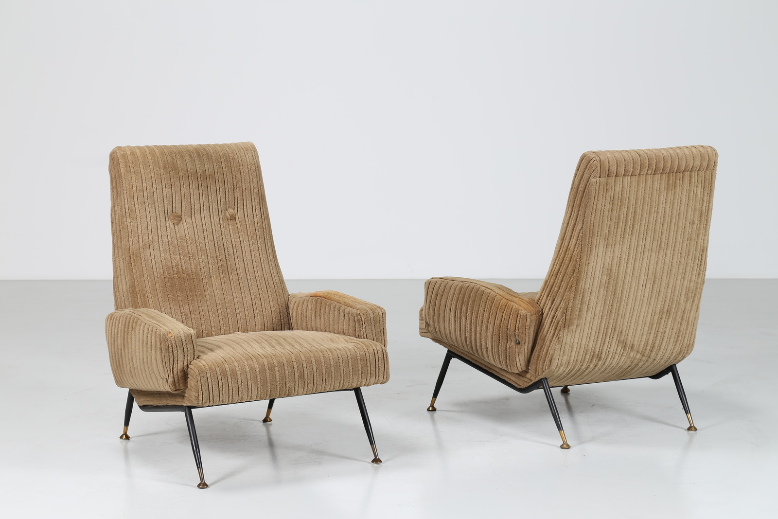 MANIFATTURA ITALIANA Coppia di poltrone in metallo laccato ottone e tessuto, anni 50 . -. Cm 66,00 x 88,00 x 74,00.