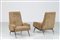 MANIFATTURA ITALIANA Coppia di poltrone in metallo laccato ottone e tessuto,...