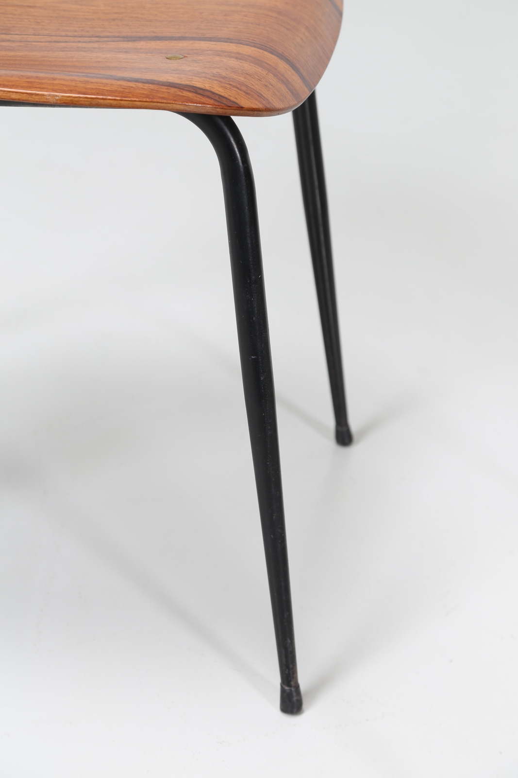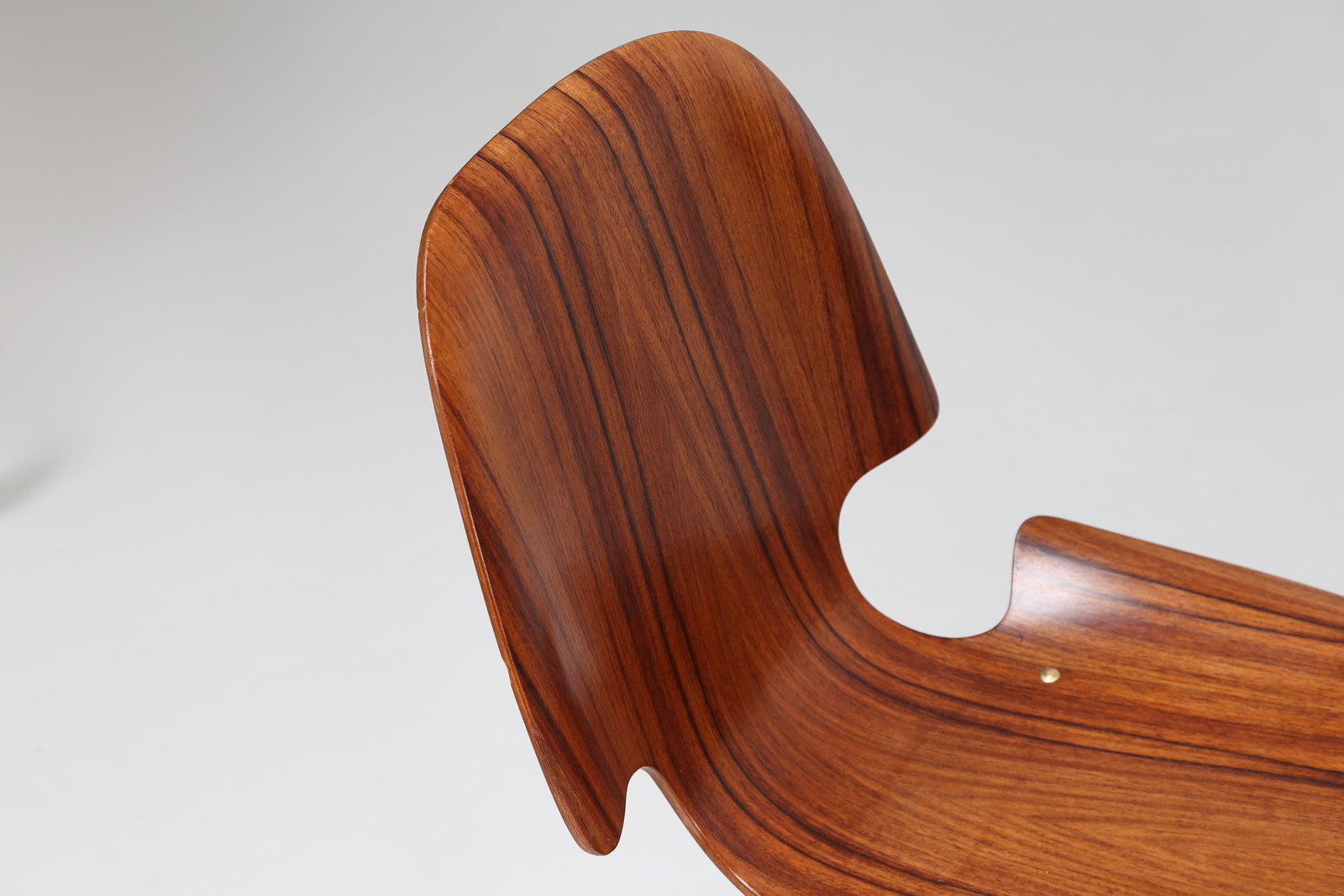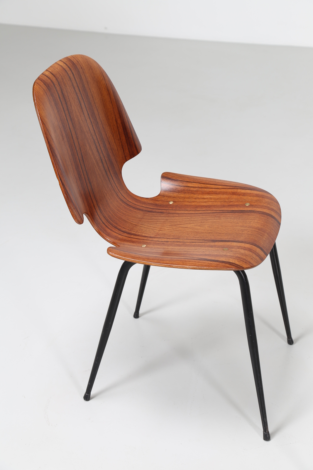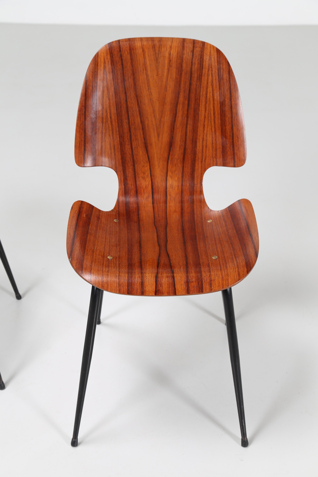 RATTI CARLO Pair of metal and curved plywood chairs, mod. Lulli, for ILC Curved wood Factory, 60’s.