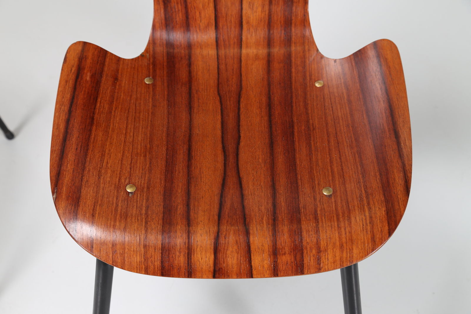 RATTI CARLO Coppia di sedie in metallo e compensato curvo, mod. Lulli, per...