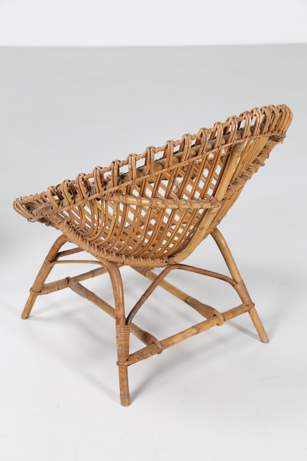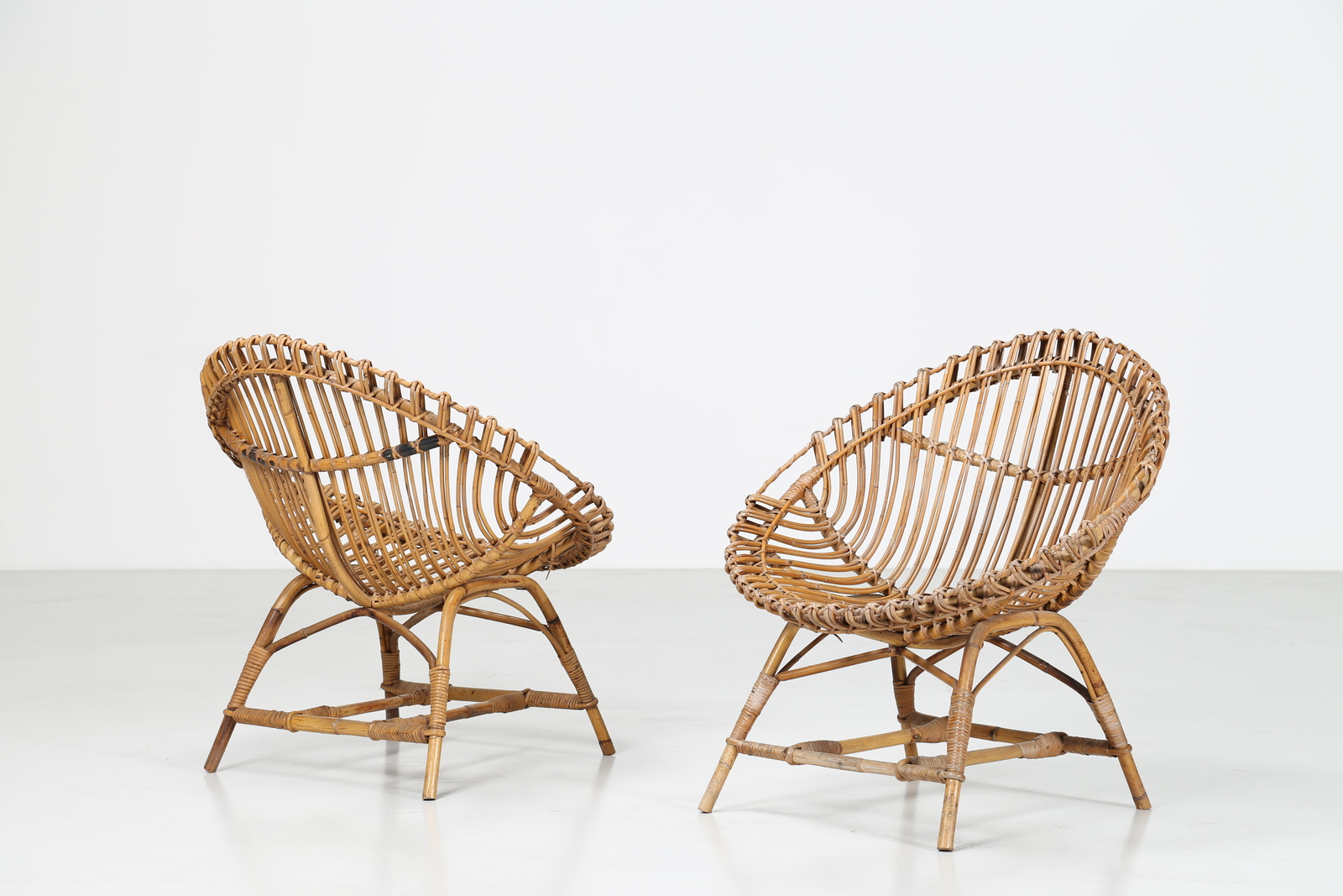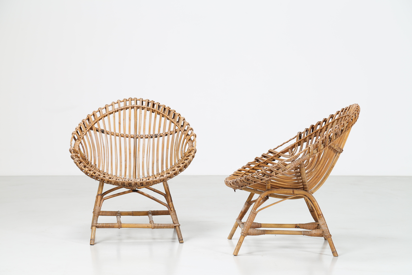 BONACINA VITTORIO Pair of wicker egg armchairs, for Bonacina, 50’s.