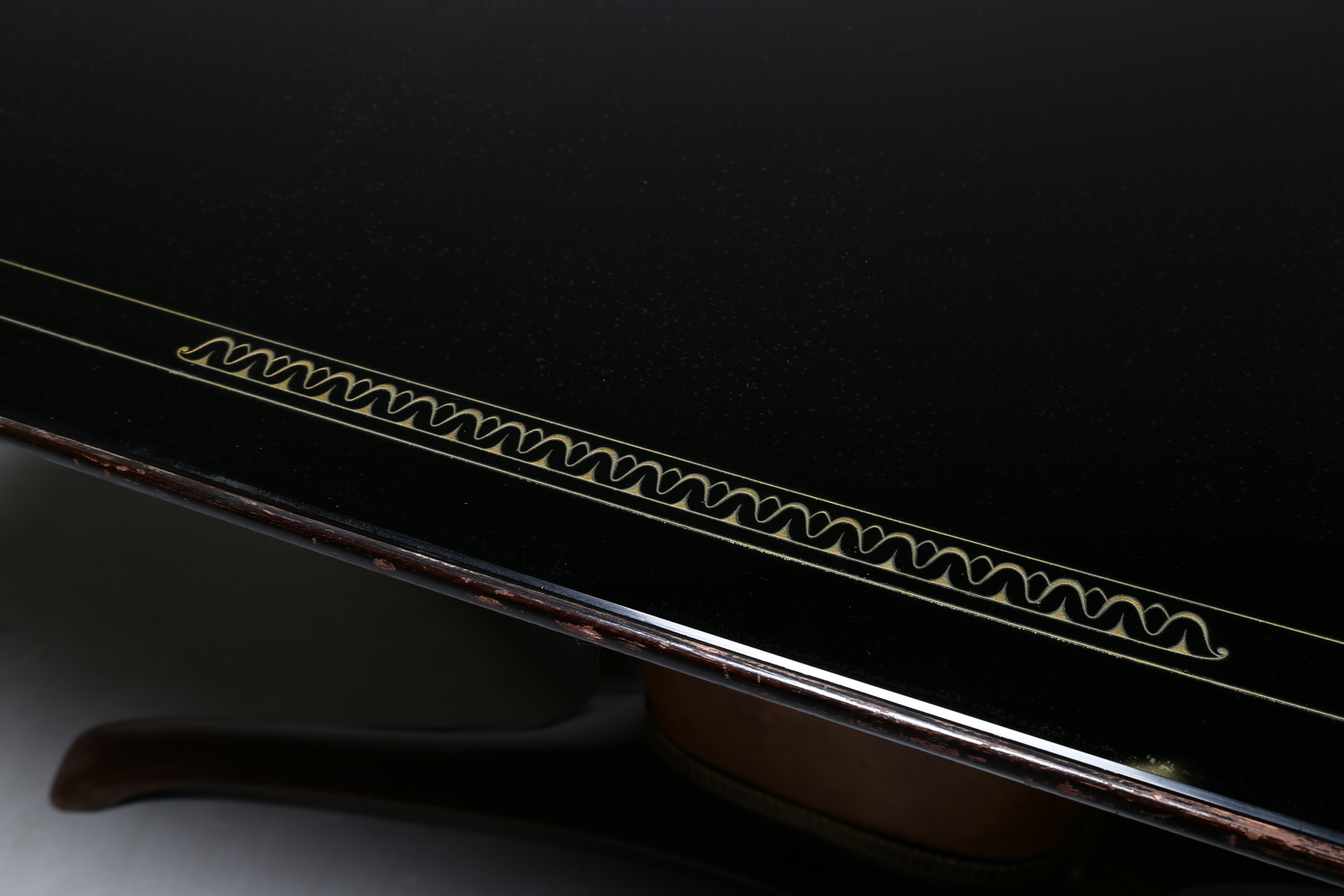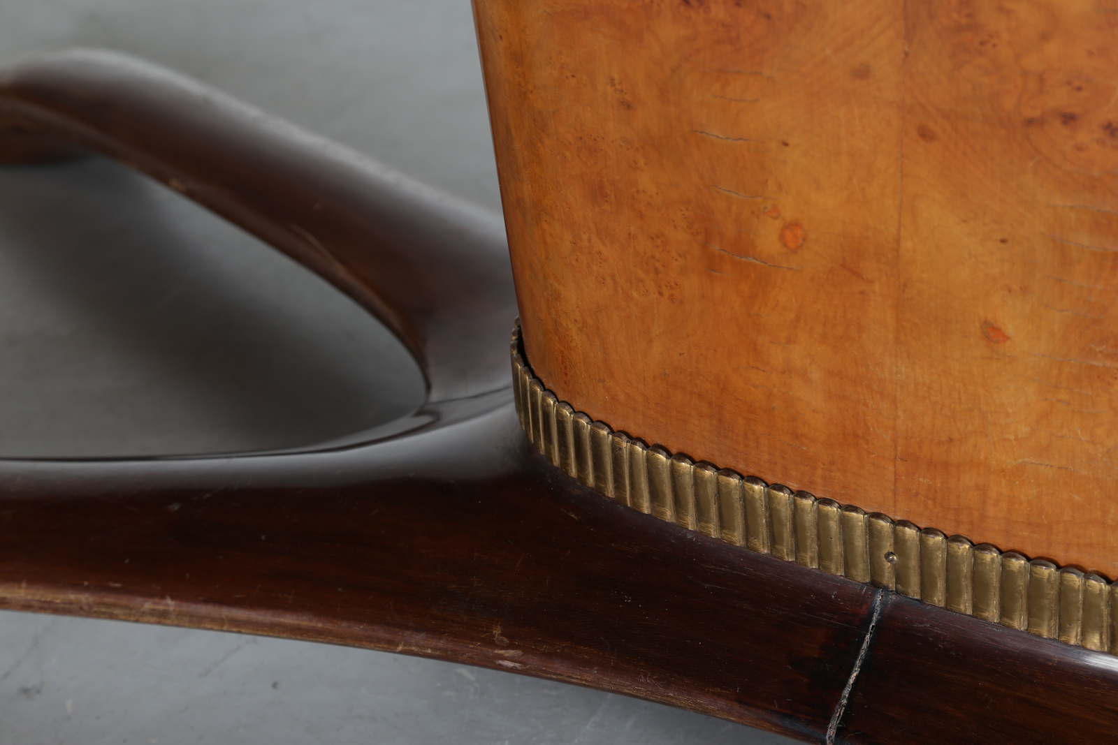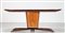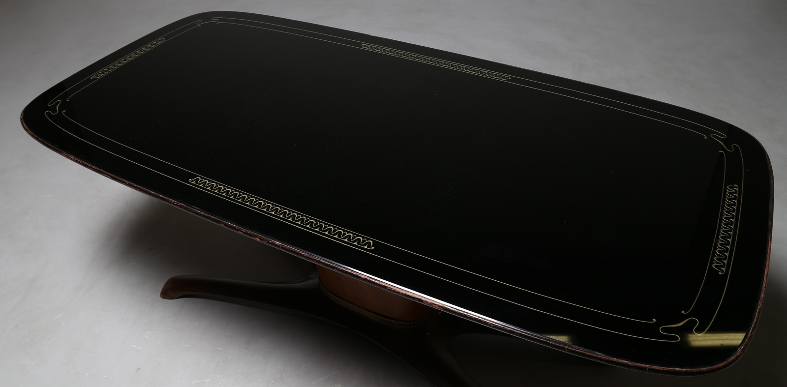 JANNACE SAVERIO Mahogany table with brass details and decorated glass level, for Jannace and Kovacs, 50’s. Literature; Roberto Aloi similar model, Examples of modern furniture, Ulrico Hoepli 1952, fig. 146