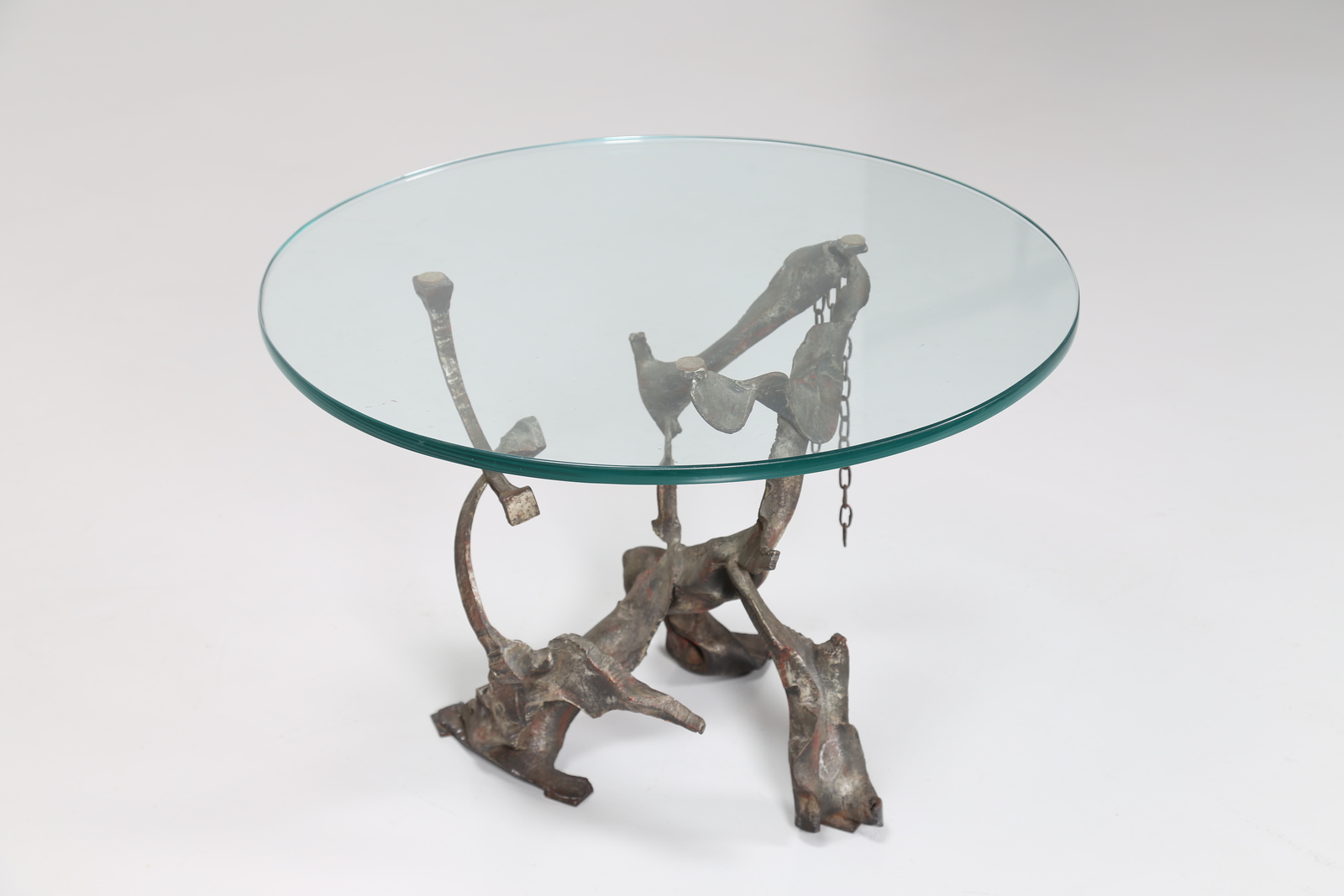 MARSURA SALVINO (n. 1938) Tavolino in ferro forgiato con piano in cristallo, anni 60. -. Cm 69,50 x 47,00 x 69,50.