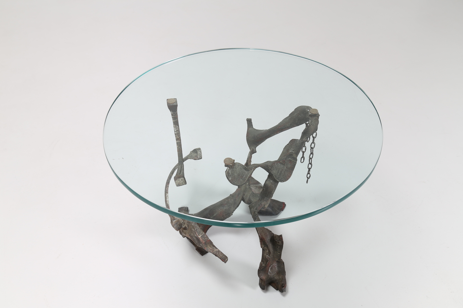 Lotto 363 | MARSURA SALVINO (n. 1938) Tavolino in ferro forgiato con piano in cristallo,...