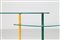 PAOLI EDOARDO Coloured lacquered metal table, brass tips and ferrules with tempered glass shelves, mod. Arlecchino, Vitrex production 1950. Literature; Vitrum num. 86 december 1956 pag. 30,31.