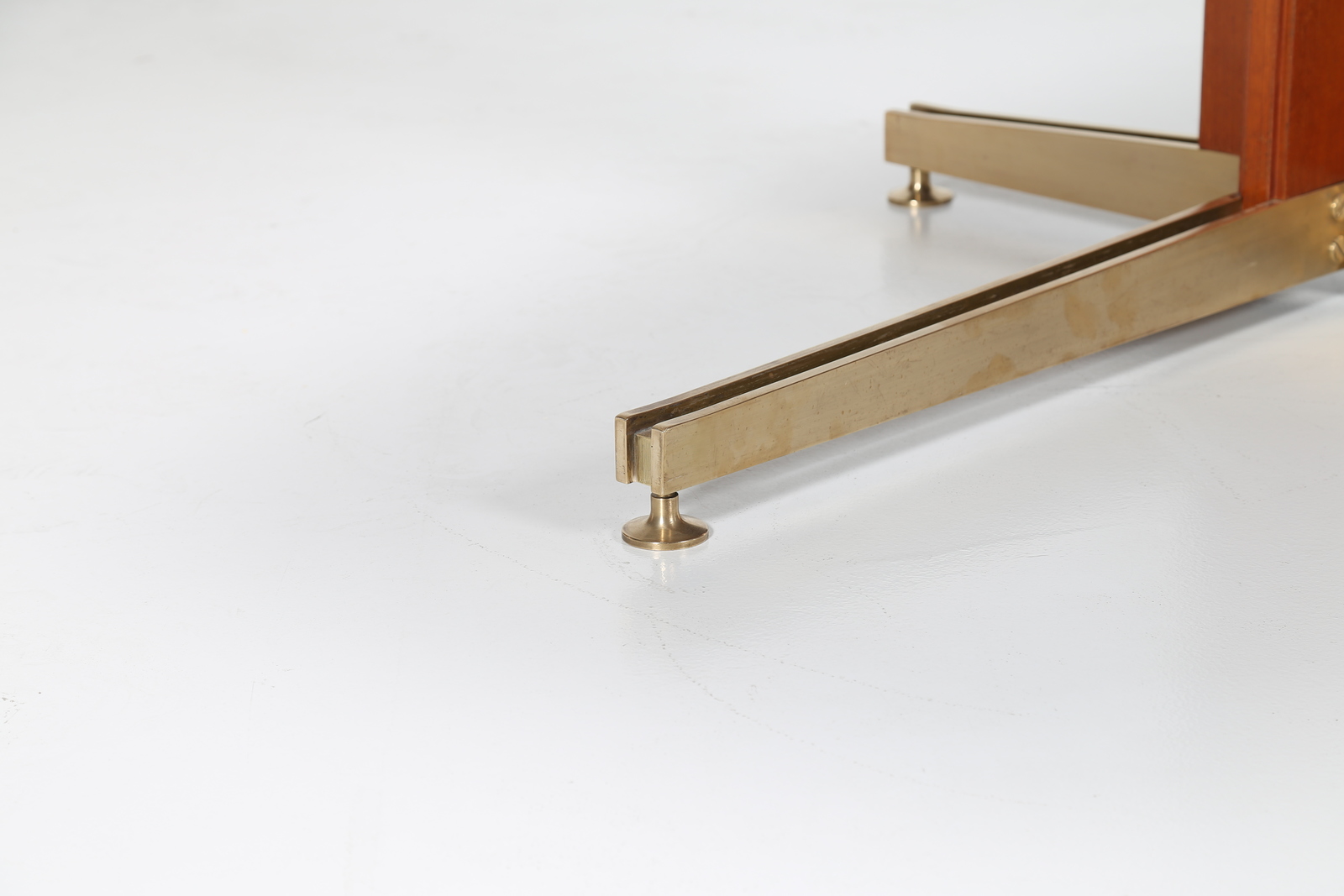 MANIFATTURA ITALIANA Teak table with brass cross base, 50’s.