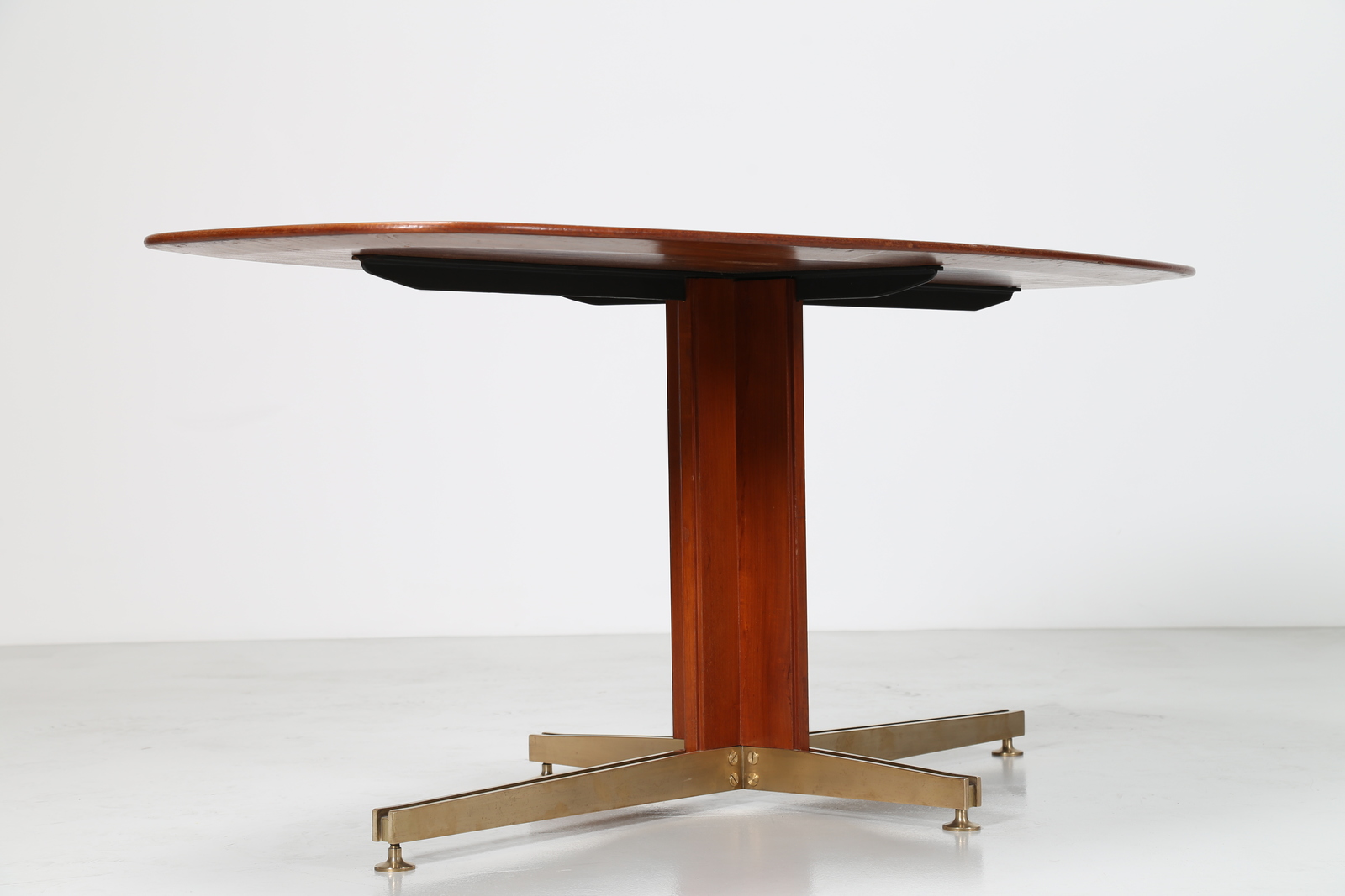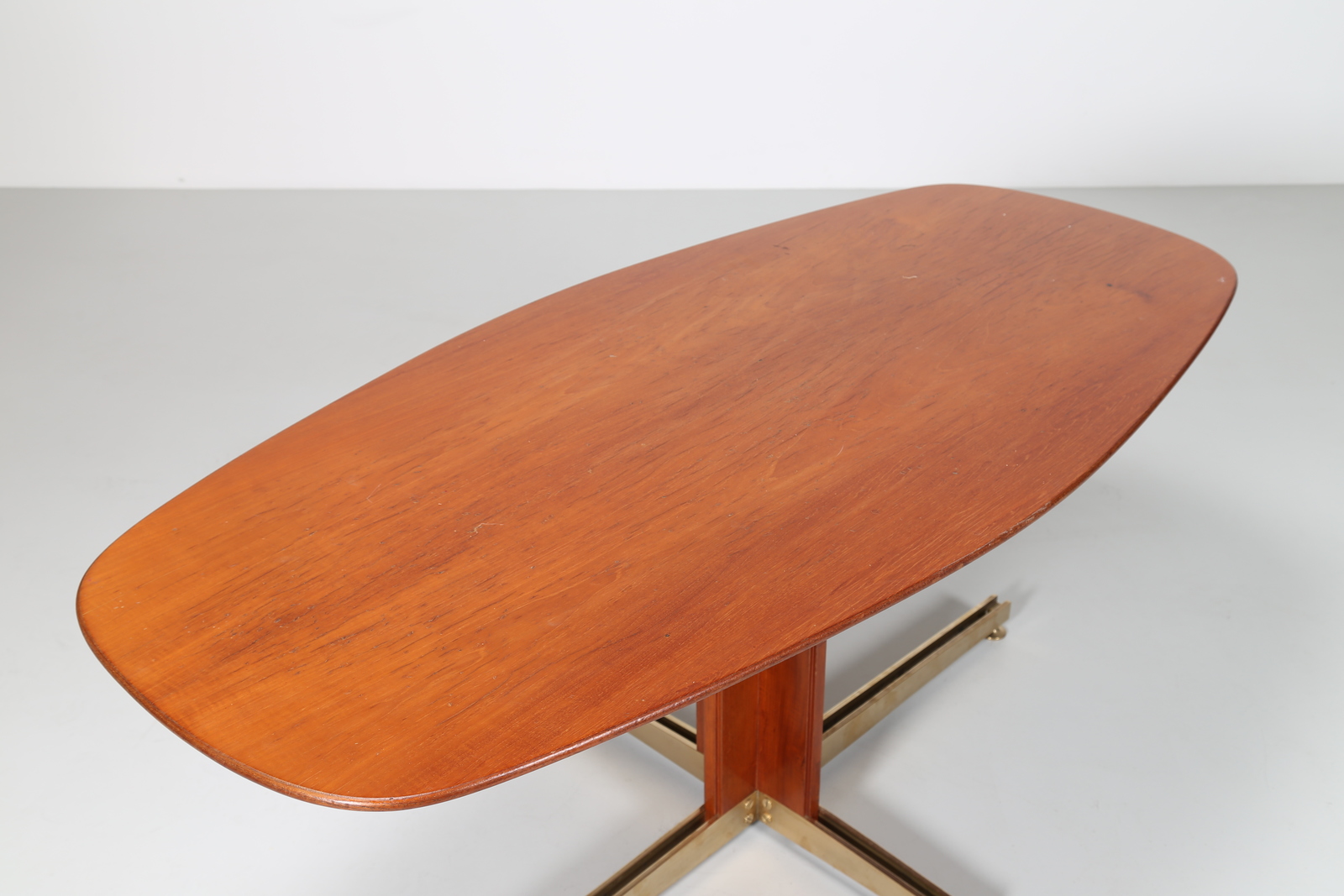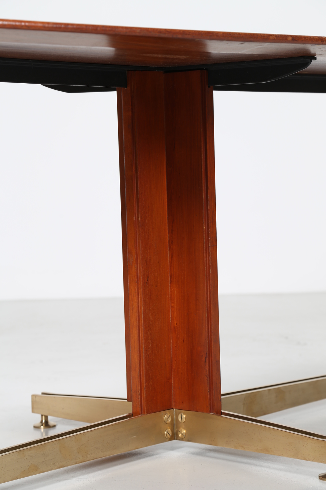 MANIFATTURA ITALIANA Tavolo in teak con base a croce in ottone, anni 50 . -....