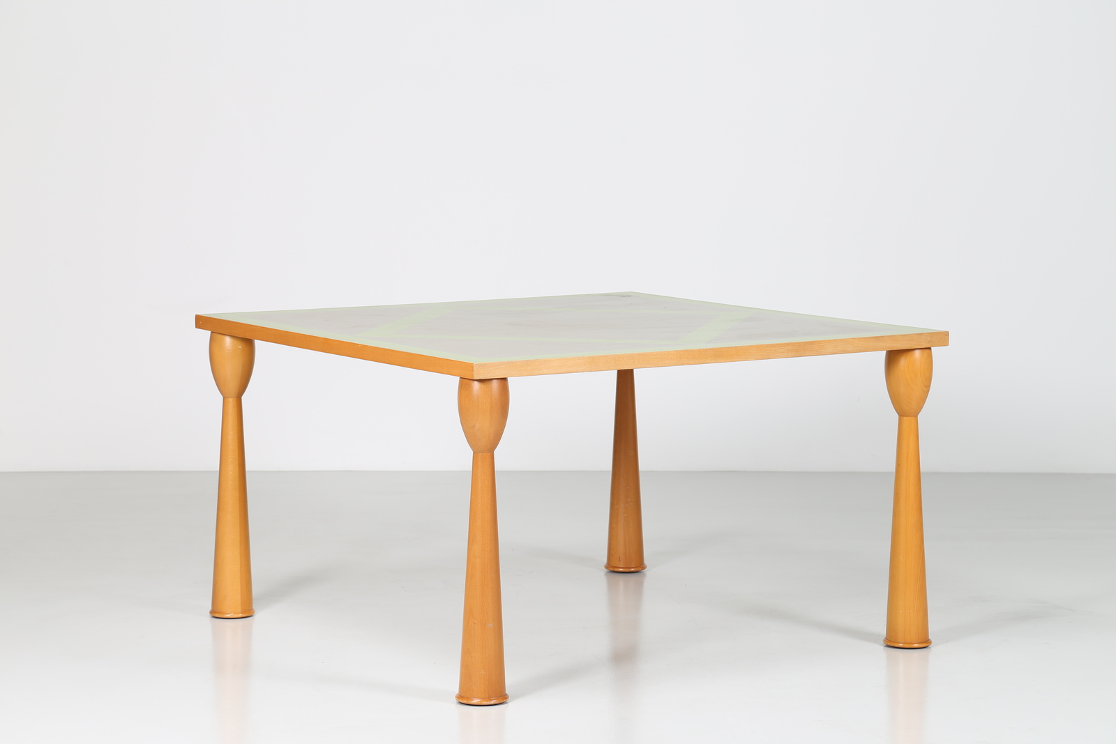 SOTTSASS ETTORE (1917 - 2007) Tavolo quadrato, gambe in massello di faggio e...