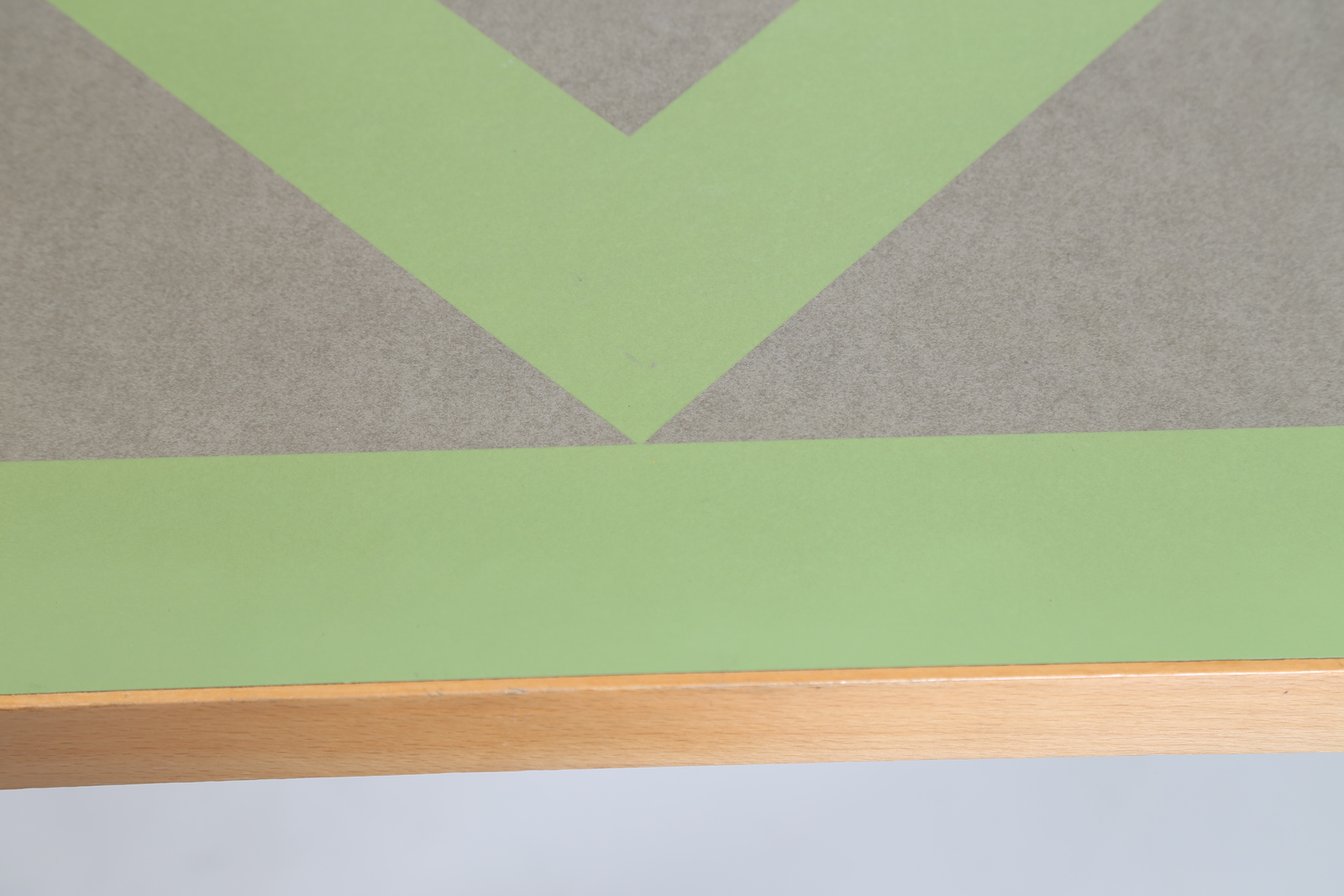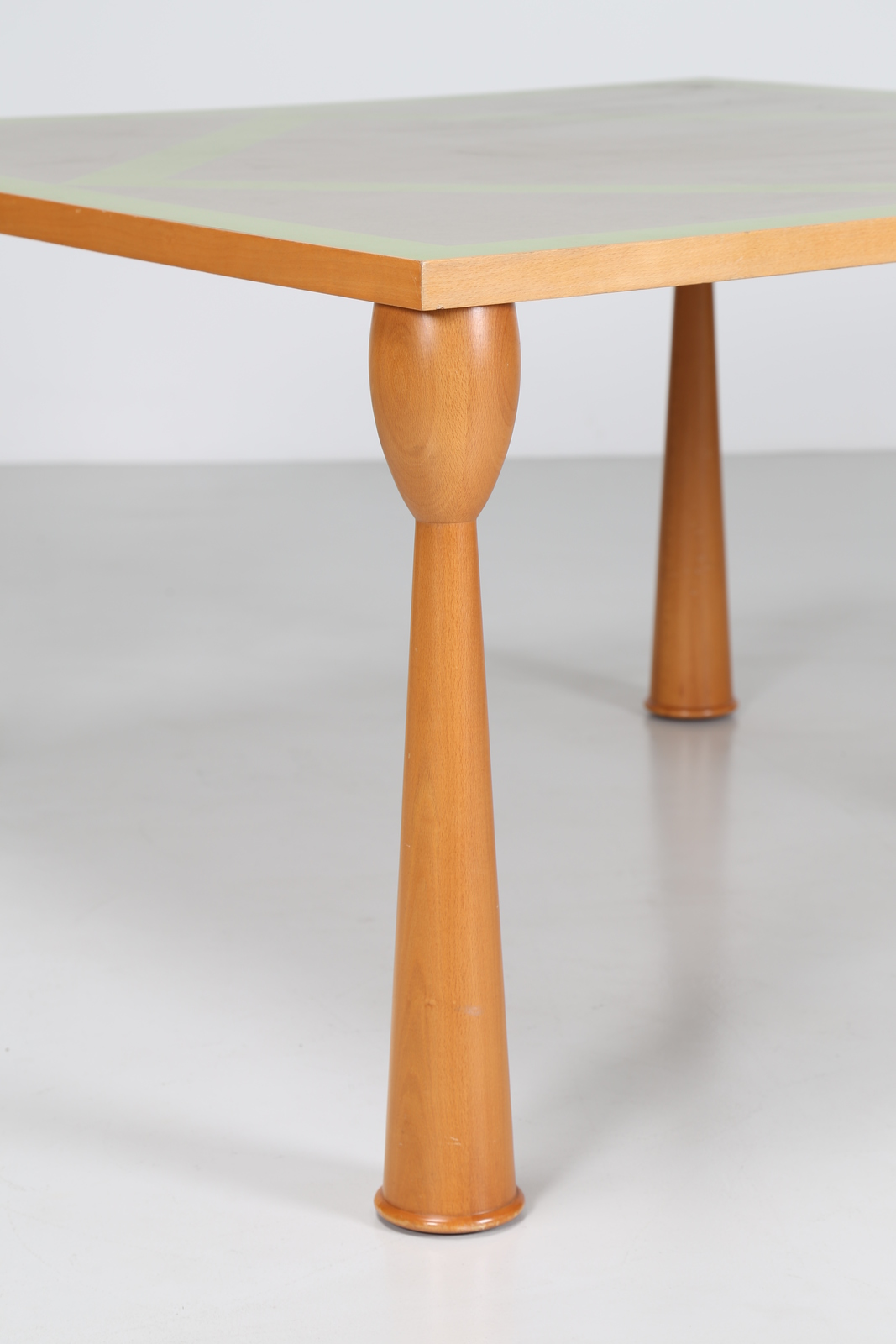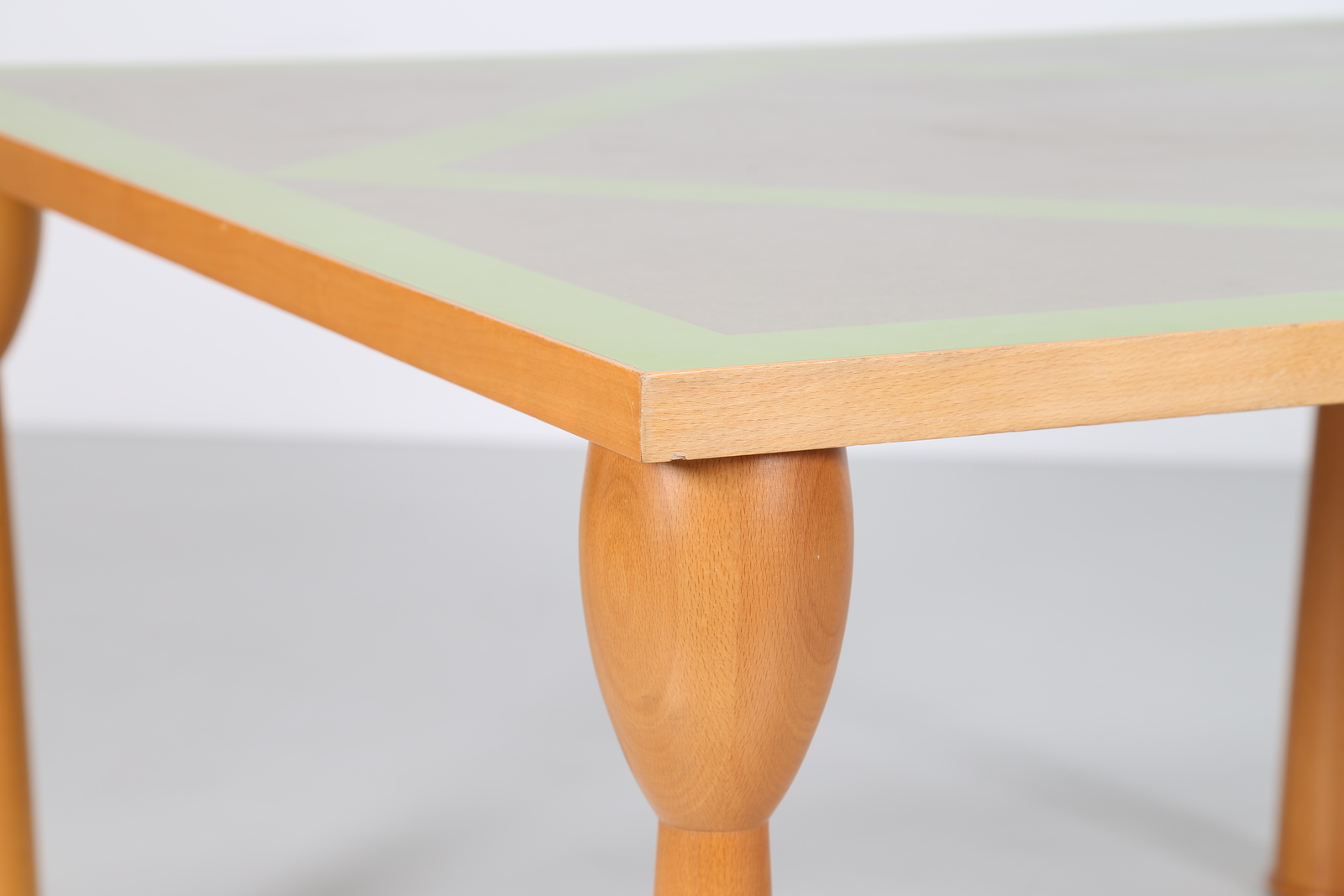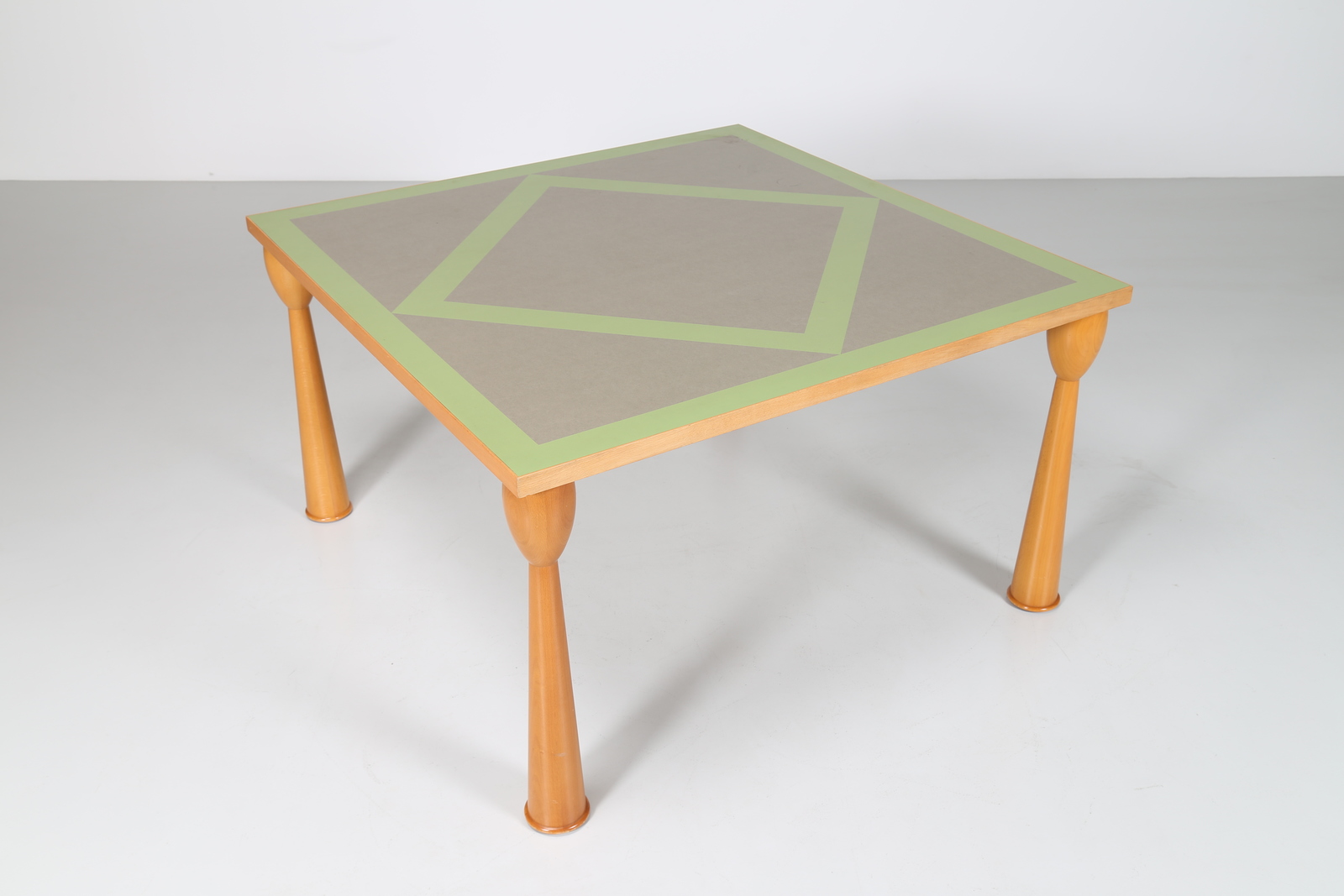 SOTTSASS ETTORE (1917 - 2007) Tavolo quadrato, gambe in massello di faggio e piano in laminato multicolor, mod. Filicudi, per Zanotta anni 70 . -. Cm 128,00 x 73,00 x 128,00.
