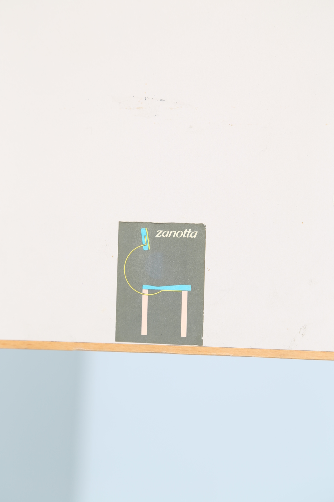 SOTTSASS ETTORE (1917 - 2007) Square table, beech’s bar legs and laminated multicolor level, mod. Filicudi, for Zanotta, 70’s. . . Cm 128,00 x 73,00 x 128,00.