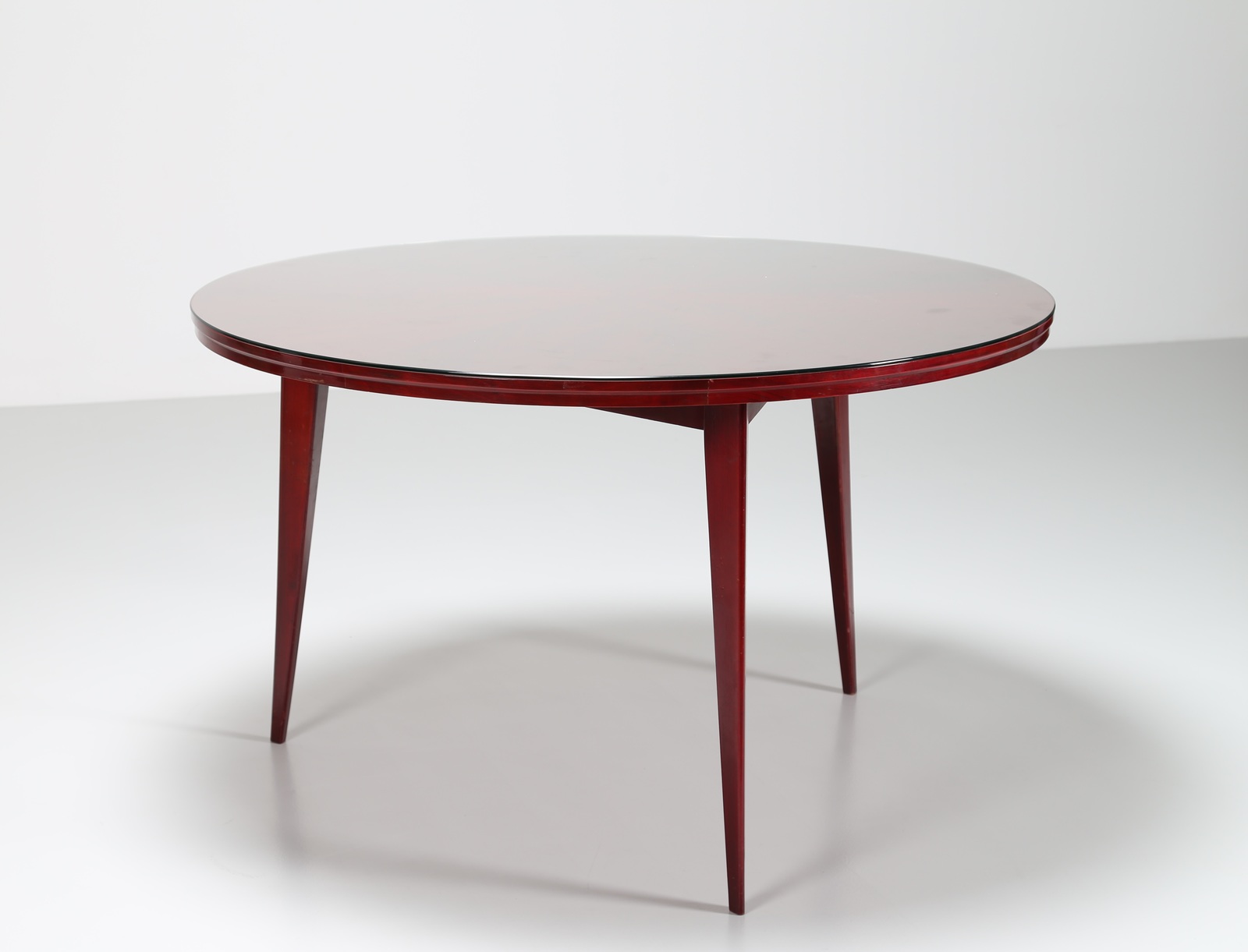 CAVATORTA SILVIO Tavolo in mogano con piano in vetro, per Mobili Cavatorta,...
