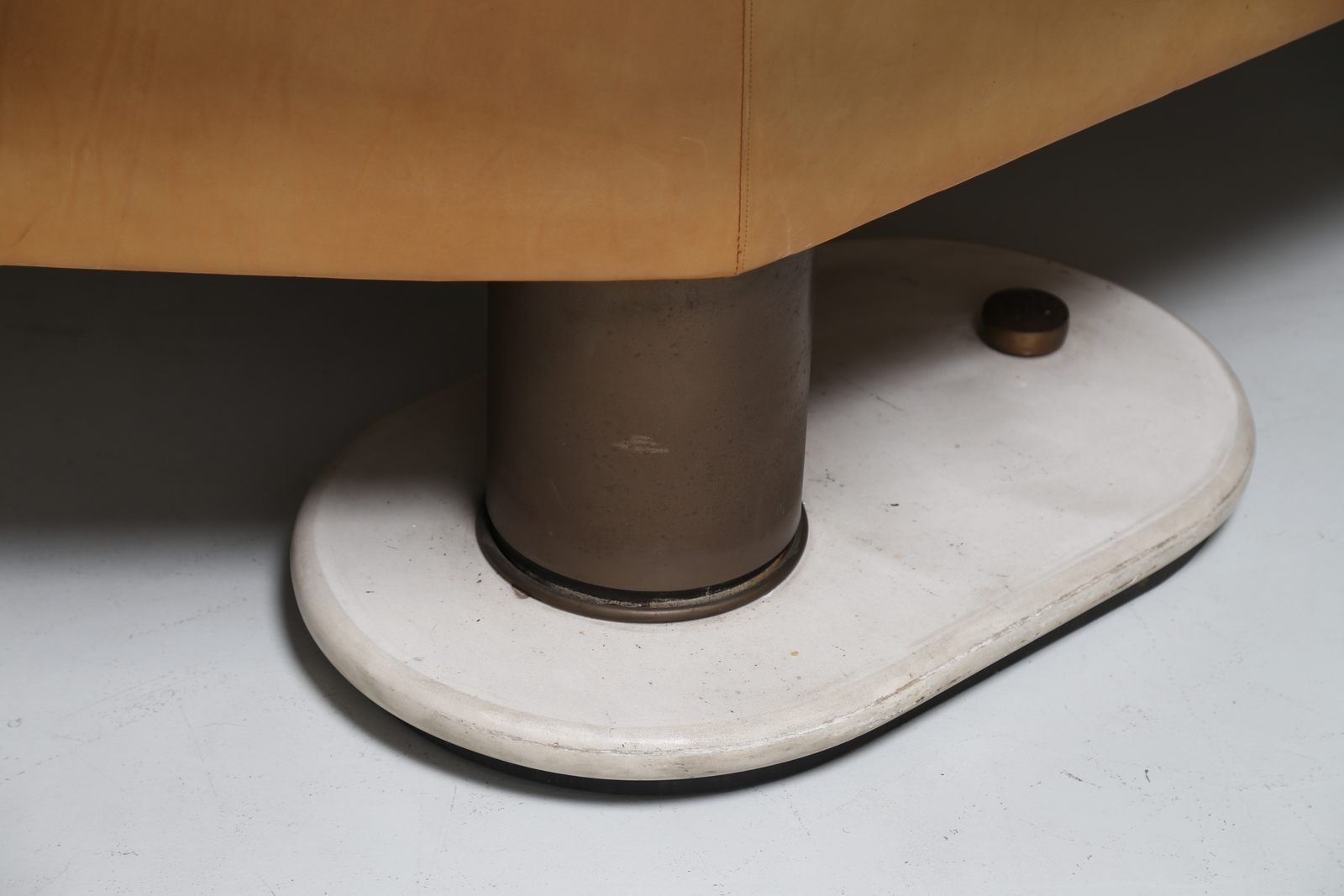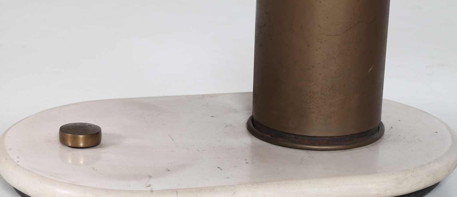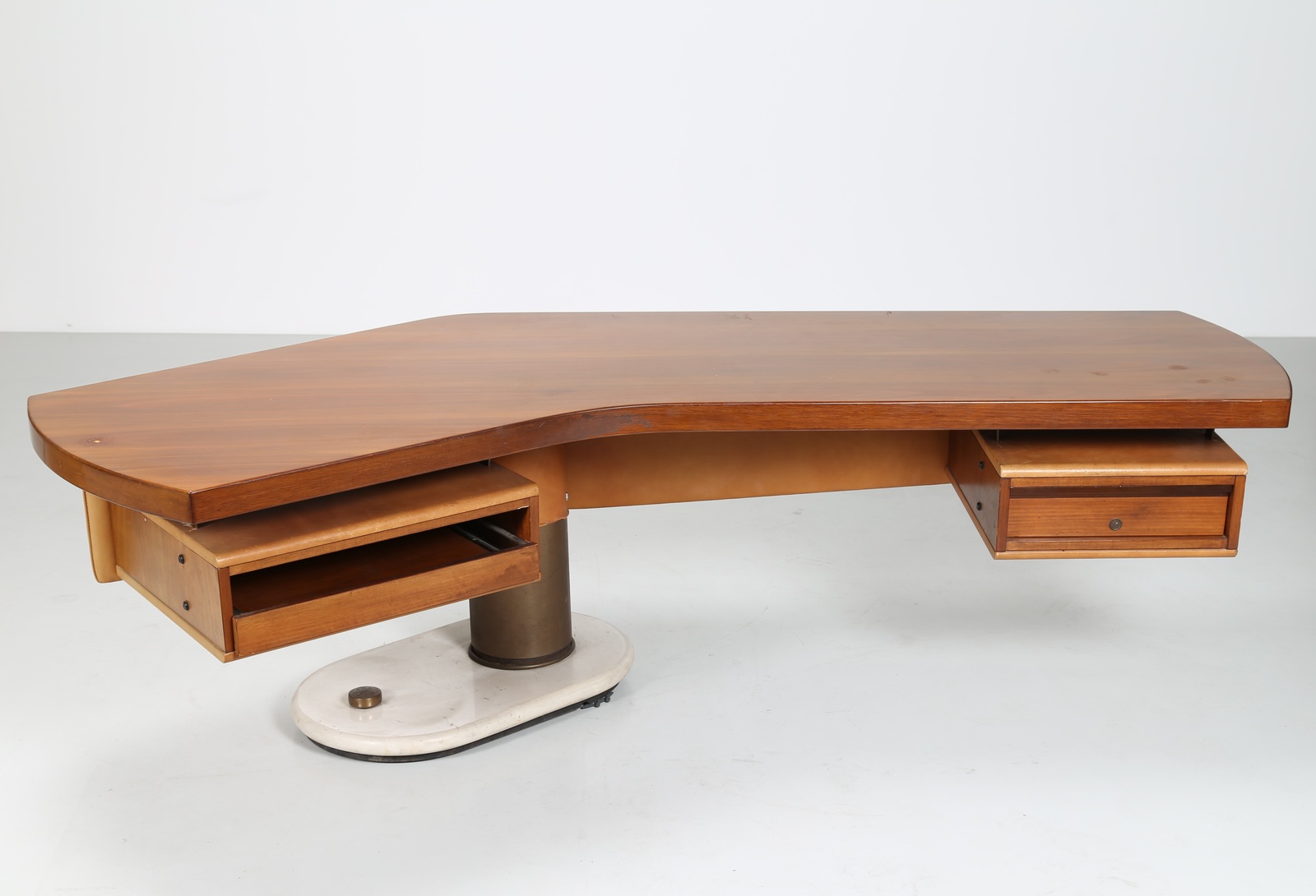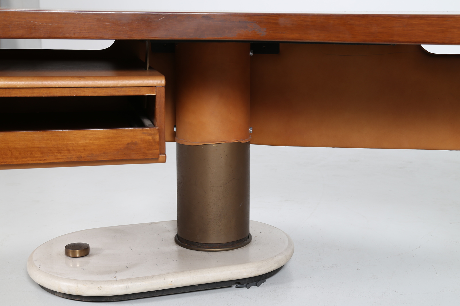 SCHIROLLI RENZO (1934 - 2000) Scrivania in legno rivestito in sky, metallo verniciato, dettagli in ottone e base in marmo, per Schirolli anni 60 . -. Cm 248,00 x 78,00 x 105,00. stima troppo alta