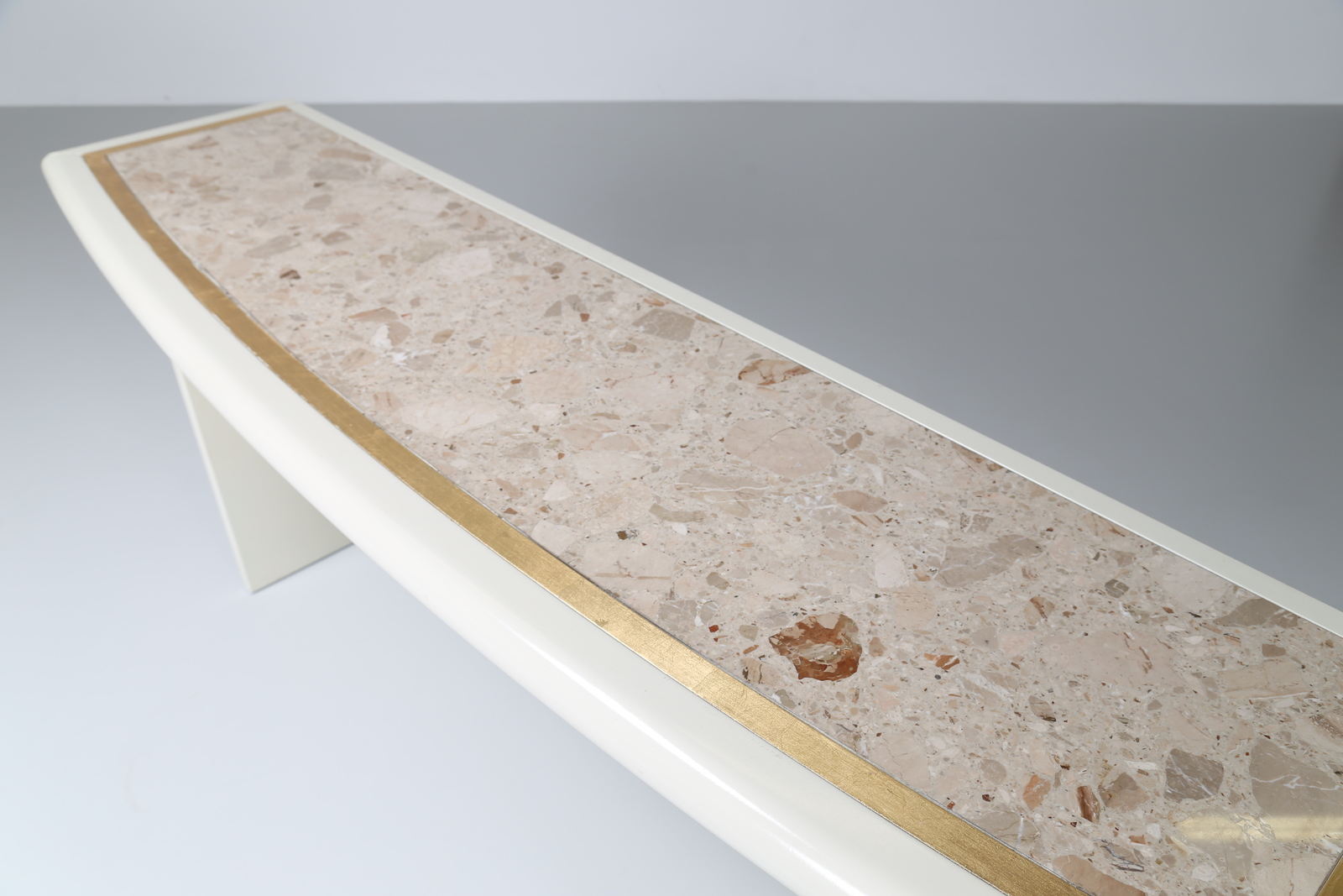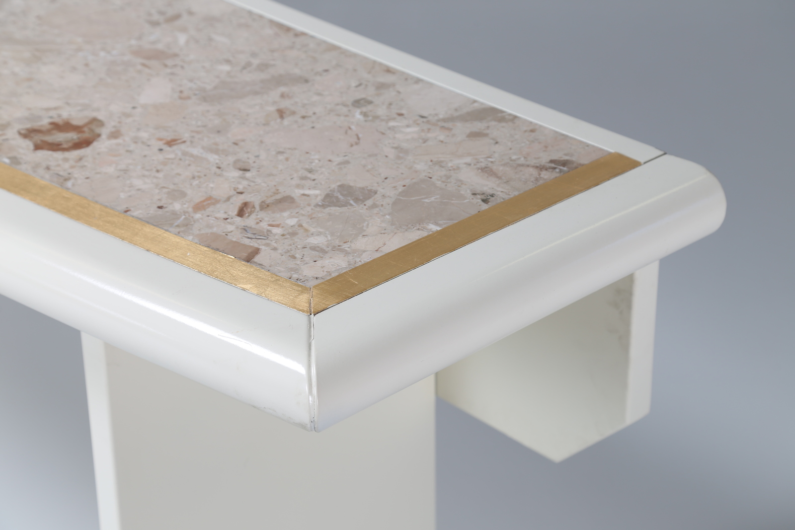 MANIFATTURA ITALIANA Consolle in legno laccato, dettagli in ottone e piano in...