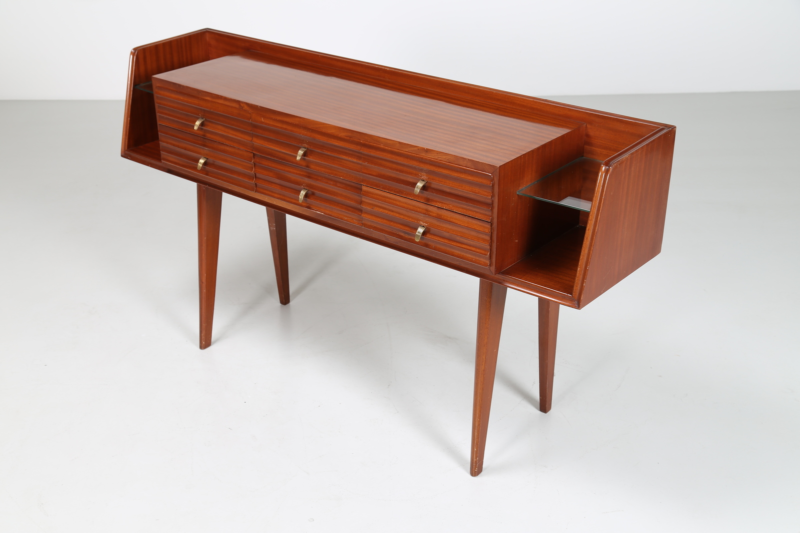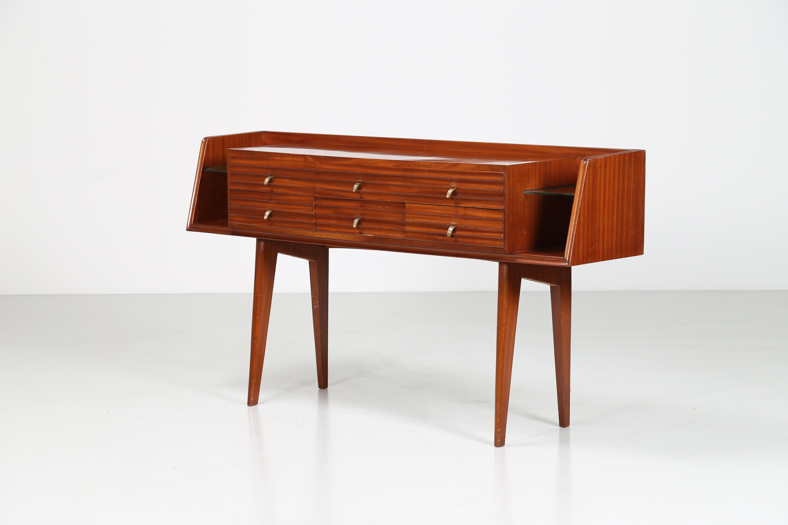 MANIFATTURA ITALIANA Credenza in mogano con piani in vetro, anni 50. -. Cm 160,00 x 87,00 x 41,00.