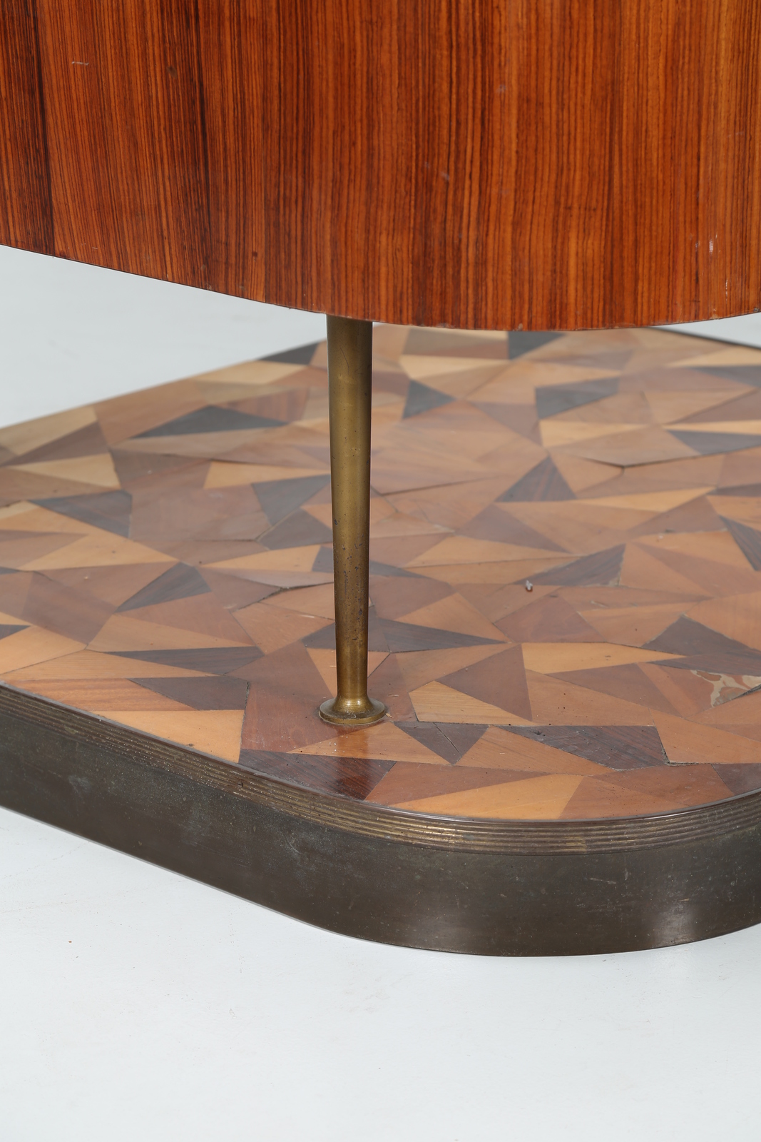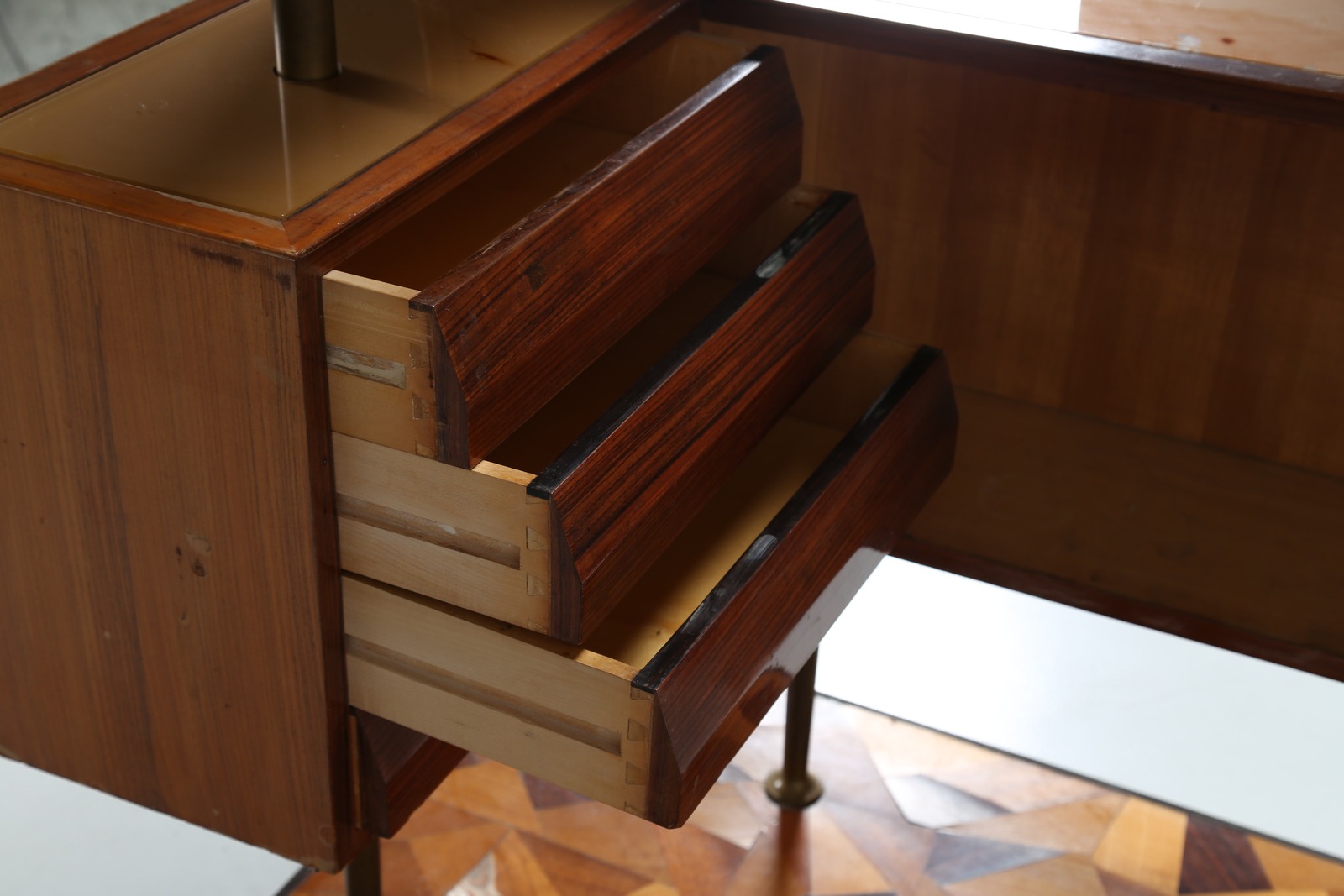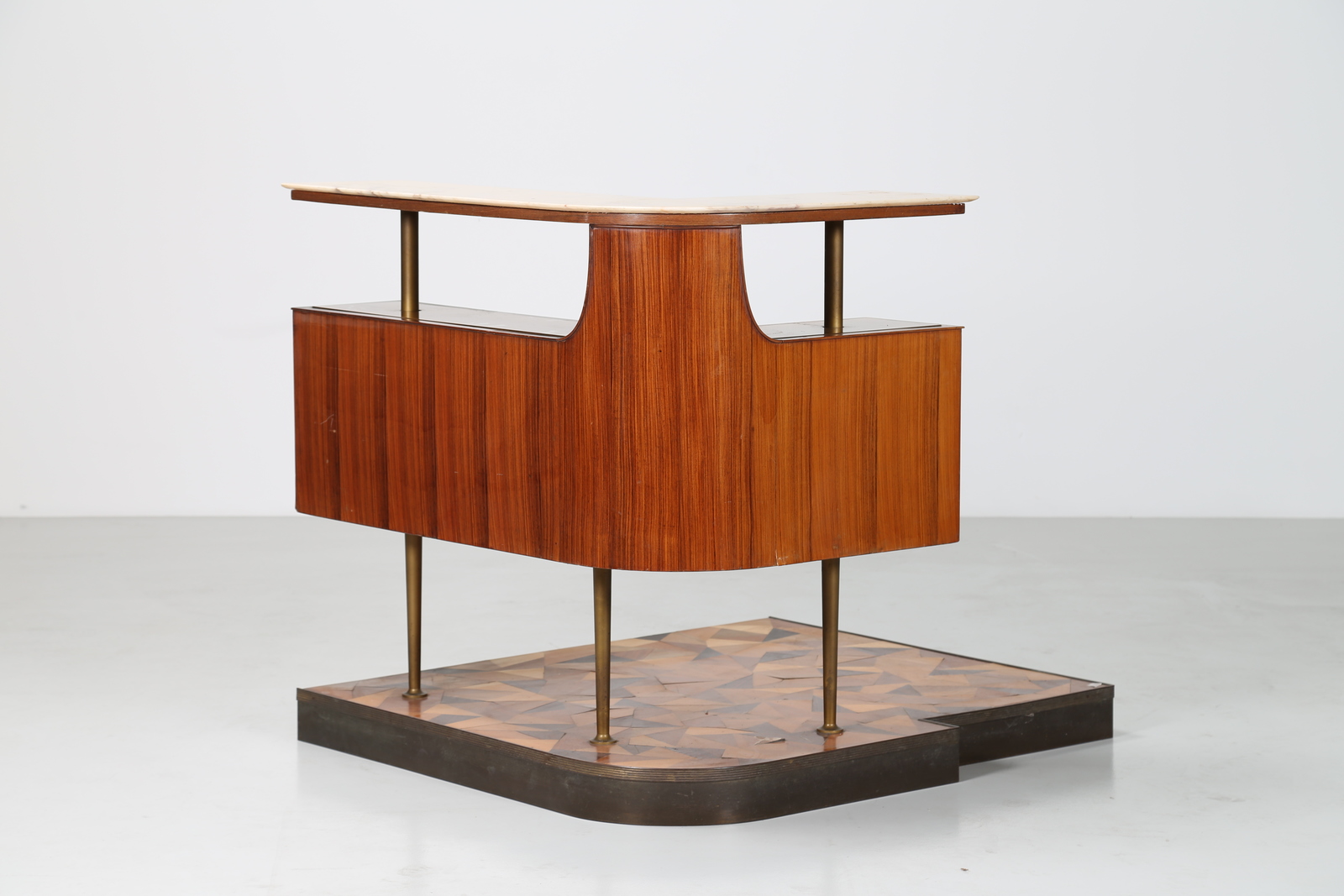 MANIFATTURA ITALIANA Rosewood and brass bar (piece of furniture) with glass and marble levels, 50’s.