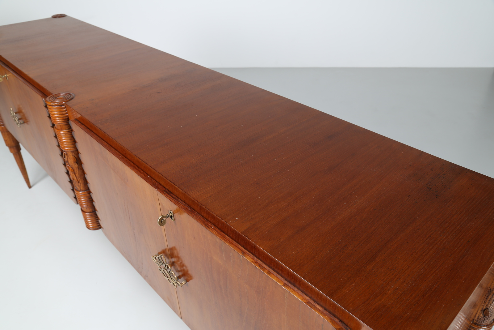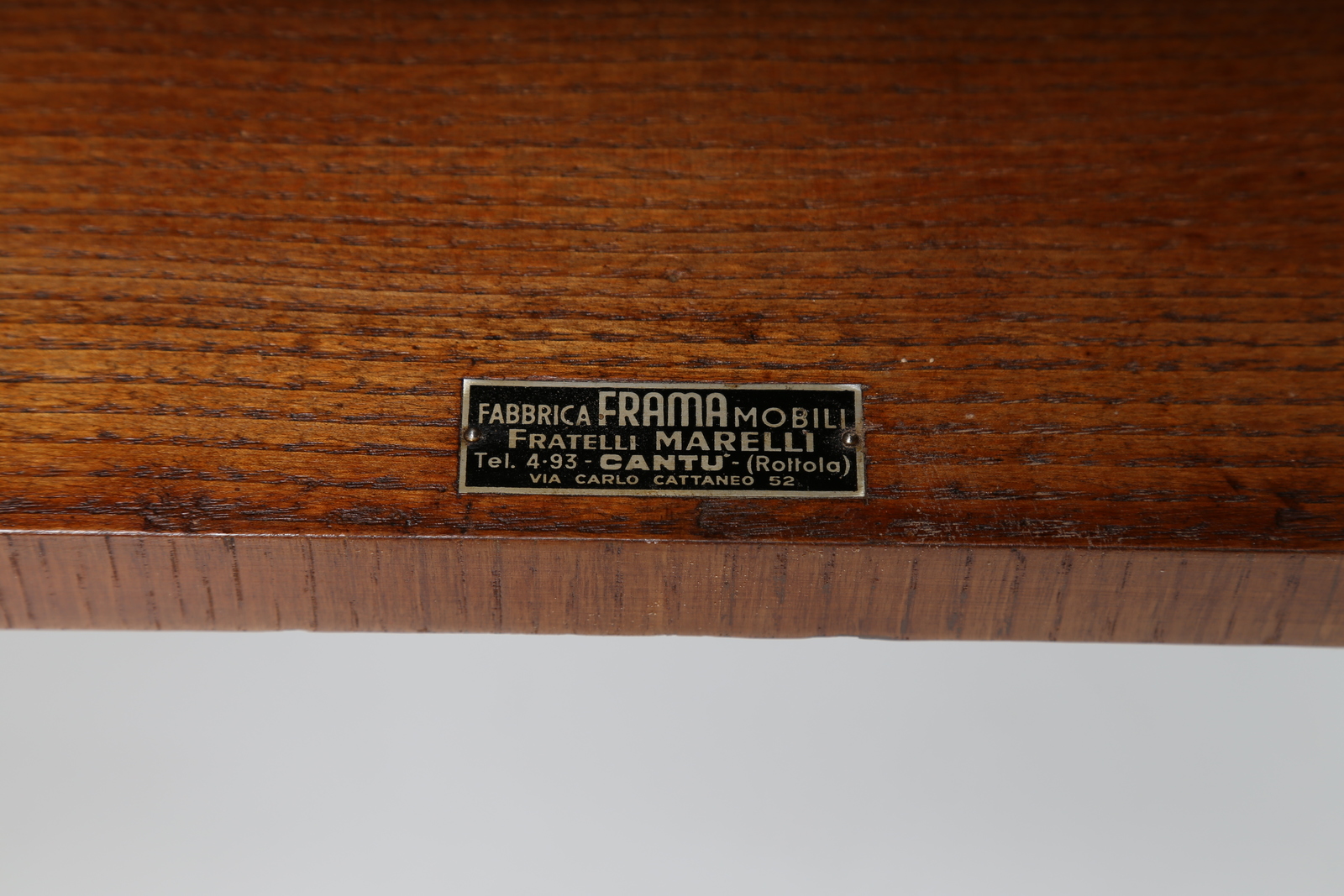 COLLI PIER LUIGI (1895 - 1968) Credenza in rovere con dettagli in ottone, produzioni Fabbrica Frama Mobili, Fratelli Marelli Cantù, anni 50. Etichetta originale presente. -. Cm 241,50 x 97,00 x 53,00.