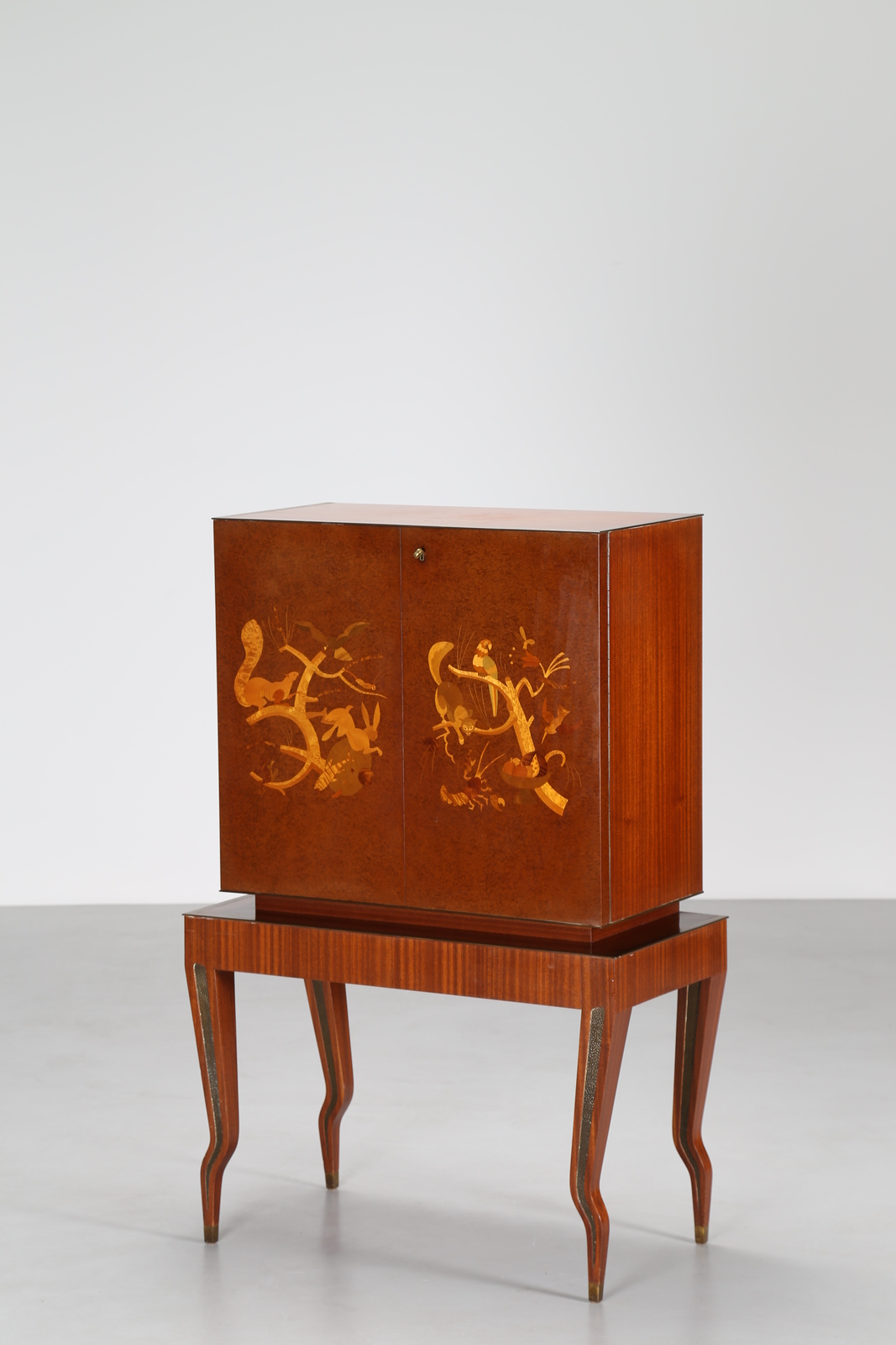 BEGA MELCHIORRE (1898 - 1976) Attrib. Mobile bar in mogano con intarsi in...
