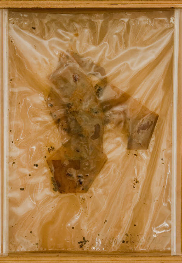 Daniel Spoerri - L a Trappe - Mouches - anni ‘70 assemblaggio di vari materiali, es. 4/80 cm. 33x23x6. Firma in basso a dx