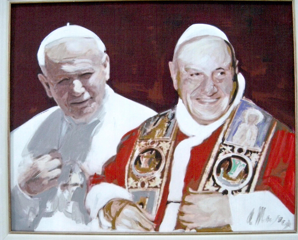 ALFONSO MANGONE Santificazione, 27 Aprile 2014 olio su tela cm. 50x40, firma in basso a destra, dichiarazione d’autenticità dell’artista su foto.