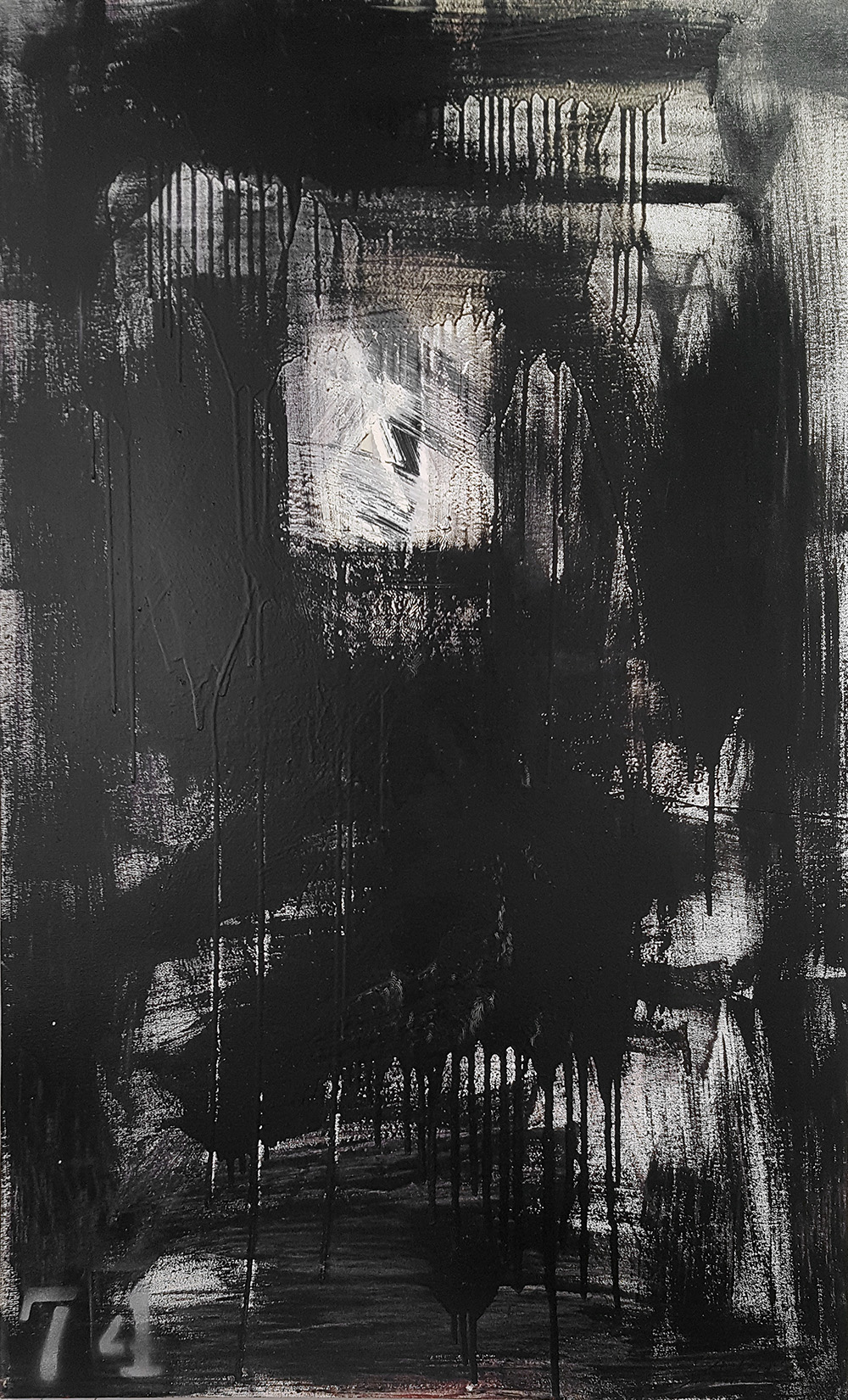 ALEX CAMINITI Punti di rottura smalto su tela cm. 120x70, dichiarazione d’autenticità dell’artista su foto.