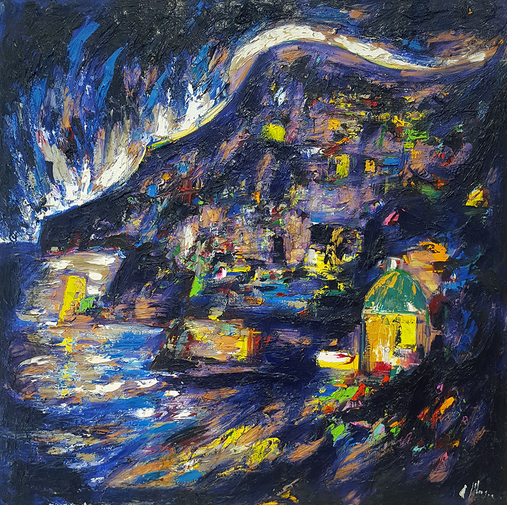 ALFONSO MANGONE Positano, 2009 olio su tela cm. 100x100, firma in basso a destra, dichiarazione d’autenticità dell’artista su foto.