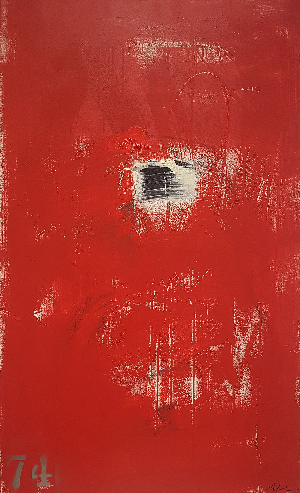 ALEX CAMINITI Punti di rottura smalto su tela cm. 120x70, firma in basso a destra, dichiarazione d’autenticità dell’artista su foto.
