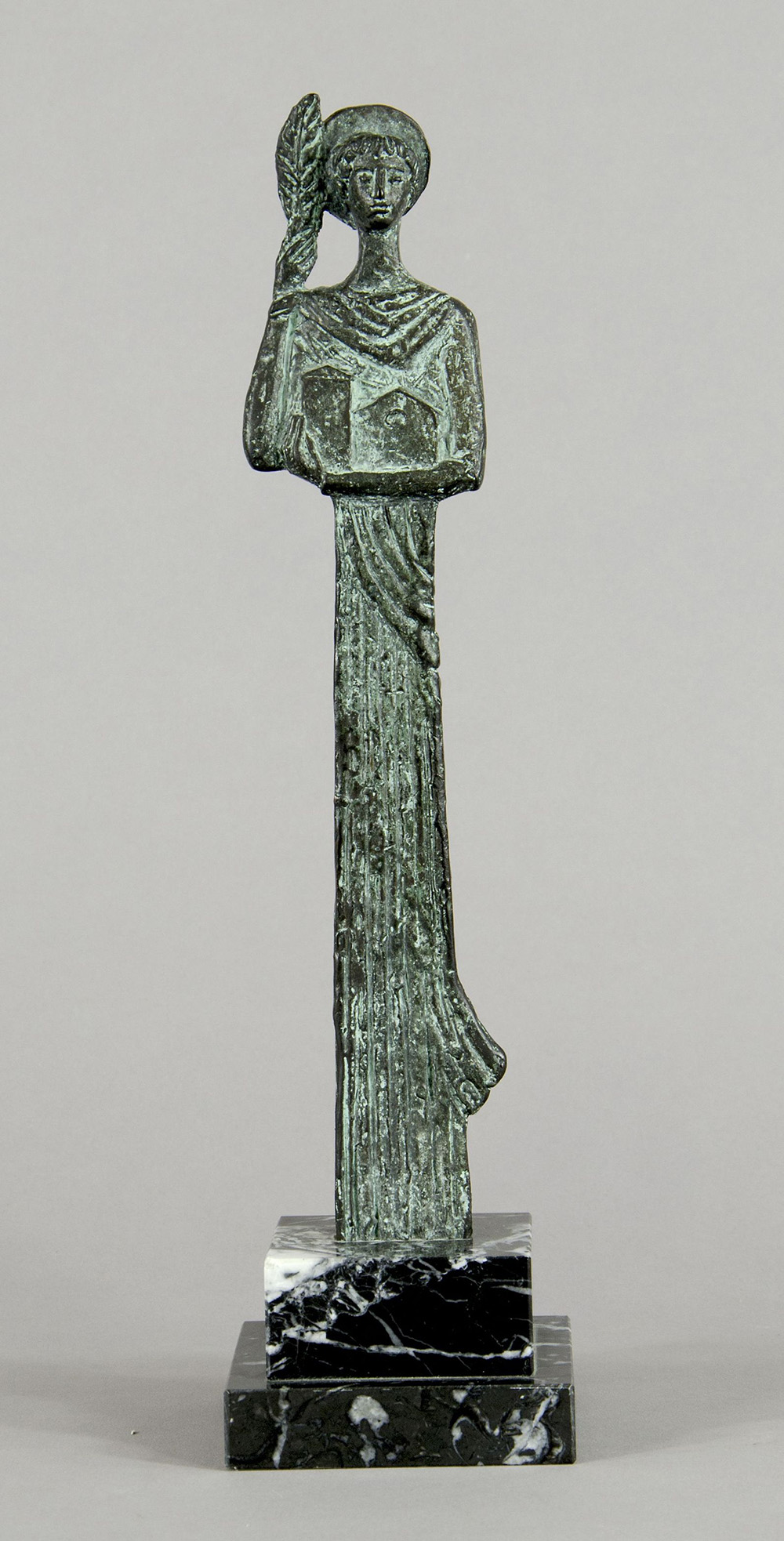 Ugo Carà 1908-2005 "San Giusto" h. tot cm. 36 - scultura in bronzo su base in marmo Firmata sul fianco.