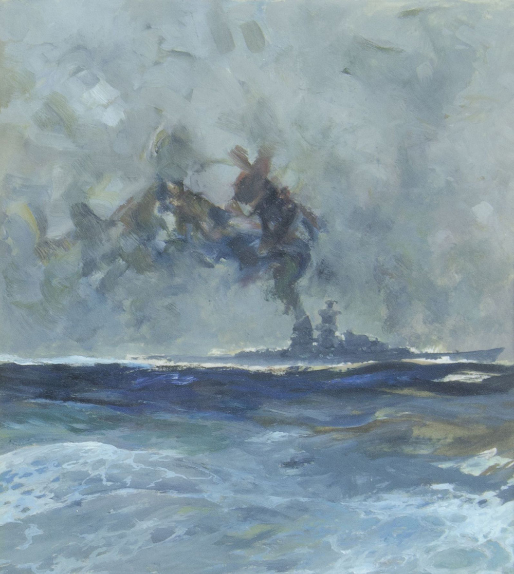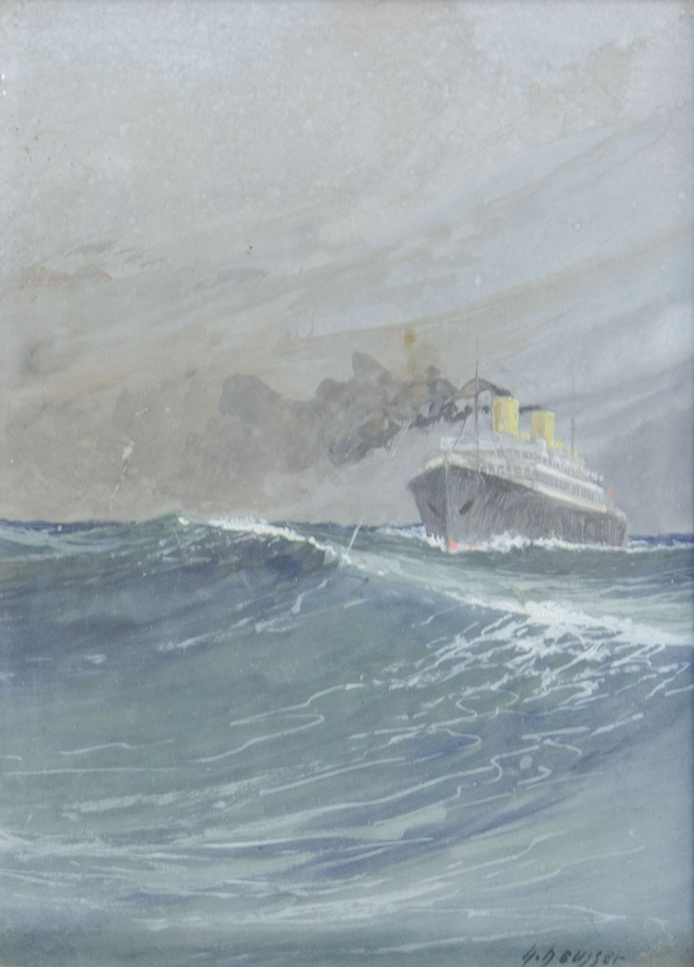 Heinrich Heusser 1881-1944 Lotto di 2 acquerelli raffiguranti navi al largo, misure diverse. Uno firmato.