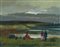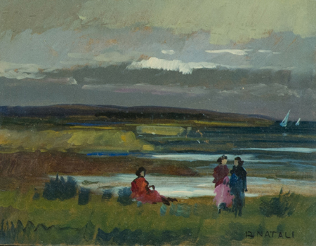 Renato Natali Livorno 1883 - Livorno 1979 Paesaggio con figure Olio su faesite, cm. 19,5x25 Firmato in basso a destra.