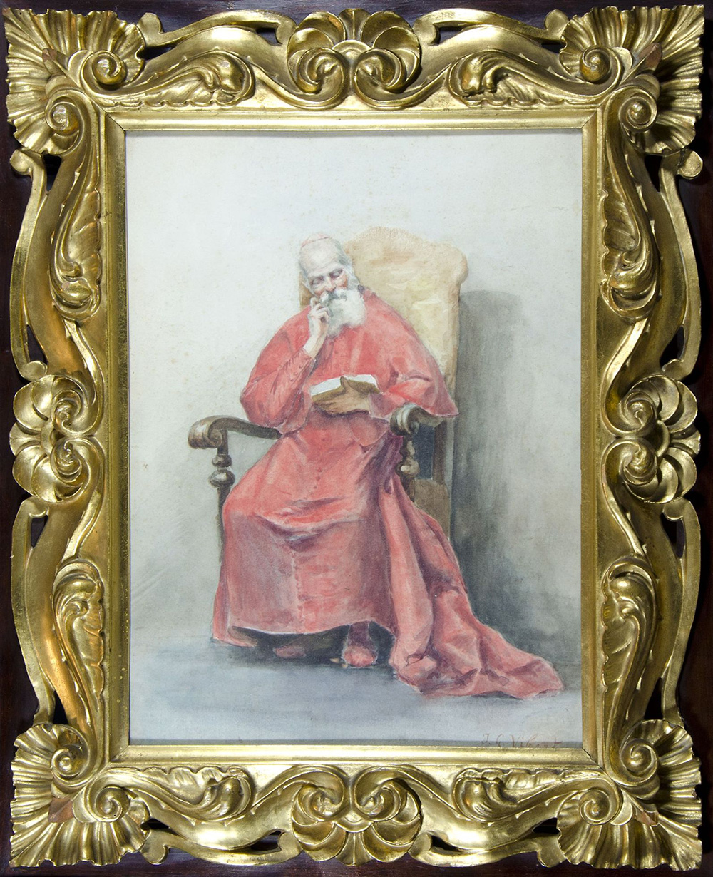 Jean George Vibert 1840-1902 "Ritratto di Cardinale" cm. 40x30 - acquerello su carta Firmato b. a d.
