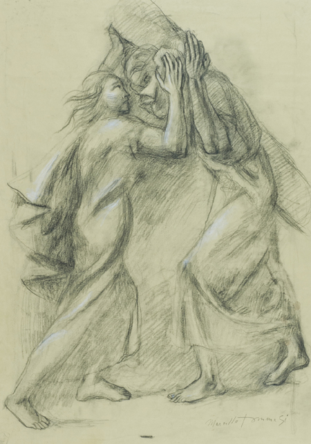 Marcello Tommasi Piertrasanta (Lu) 1928 Figure Carboncino e biacca su carta,...