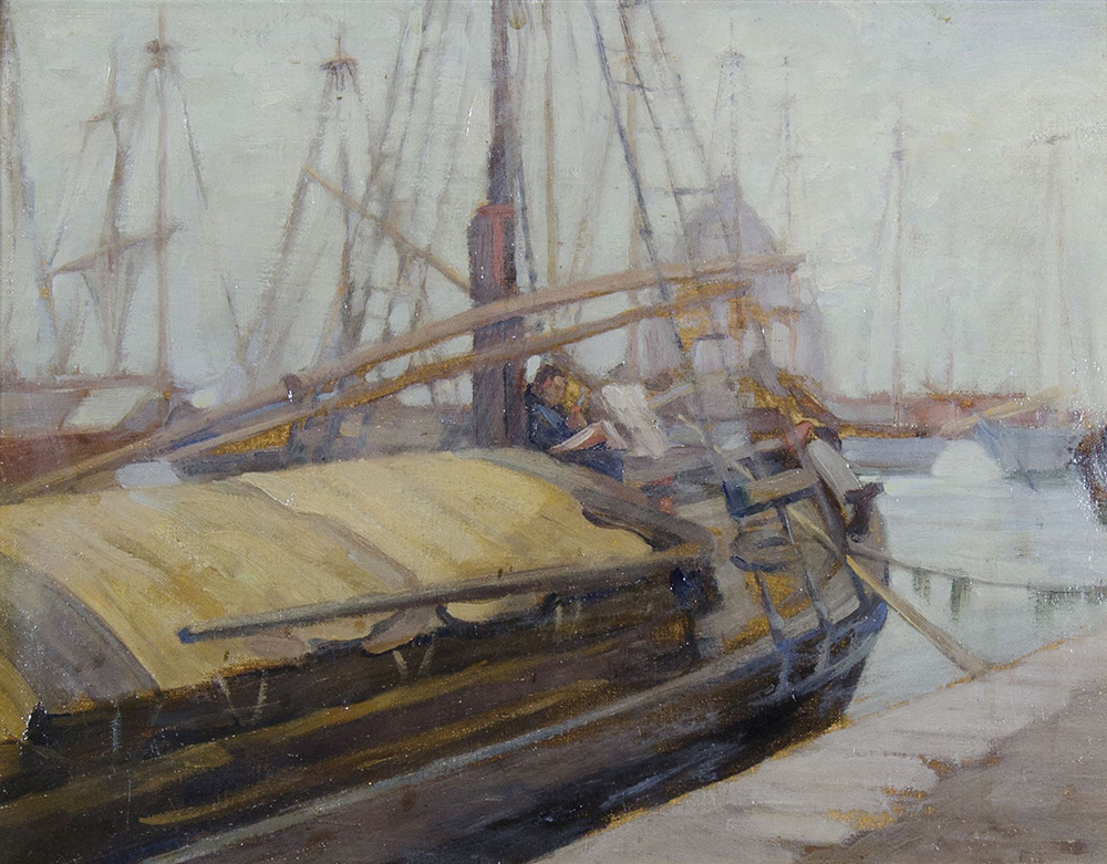 Pittore del '900 "Porticciolo con barche" cm. 36x47 - olio su tela
