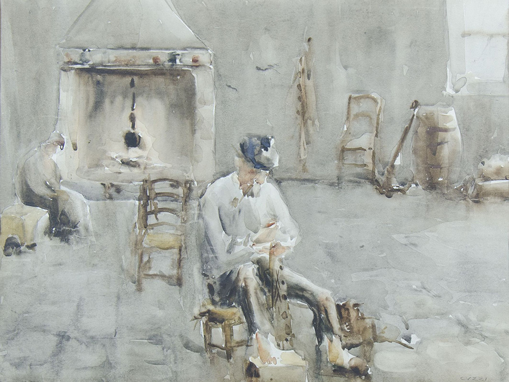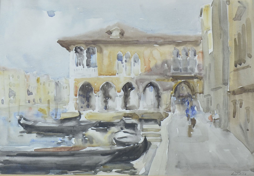 Cuzzi Lotto di 3 acquerelli incorniciati, 2 firmati.