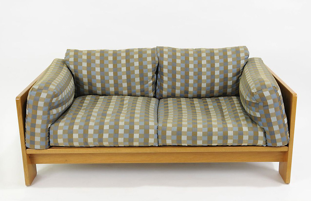 Gavina: divano a 2 posti modello "Bastiano" con struttura in legno e imbottitura in stoffa. Disegno di Tobia Scarpa, 1960.