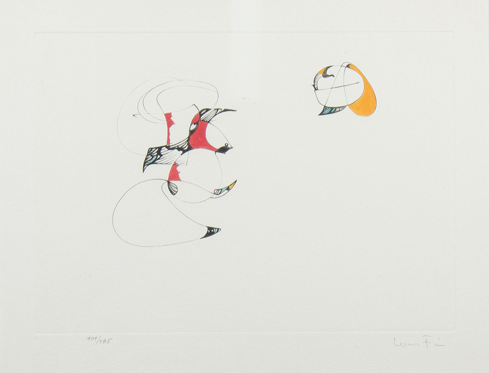 Leonor Fini Buenos Aires 1908-Parigi 1996 "Le temps de la mue" cm. 28x38 - litografia a colori Firmato b. a d. Esemplare 101/185. Illustrazione per la rivista "Le temps de la mue" del 1975.