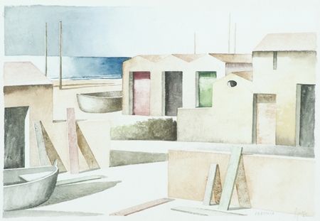 Marcello Scuffi Tizzana (Pt) 1948 Versilia Acquerello su cartoncino, cm. 35x50 Firma e titolo in basso a destra. Sul verso etichetta "Galleria d'Arte Orler", con descrizione. Autentica dell'Artista su foto.