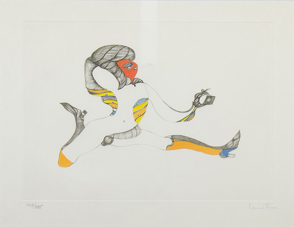 Leonor Fini Buenos Aires 1908-Parigi 1996 "Le temps de la mue" cm. 28x38 - litografia a colori Firmato b. a d. Esemplare 103/185. Illustrazione per la rivista "Le temps de la mue" del 1975.