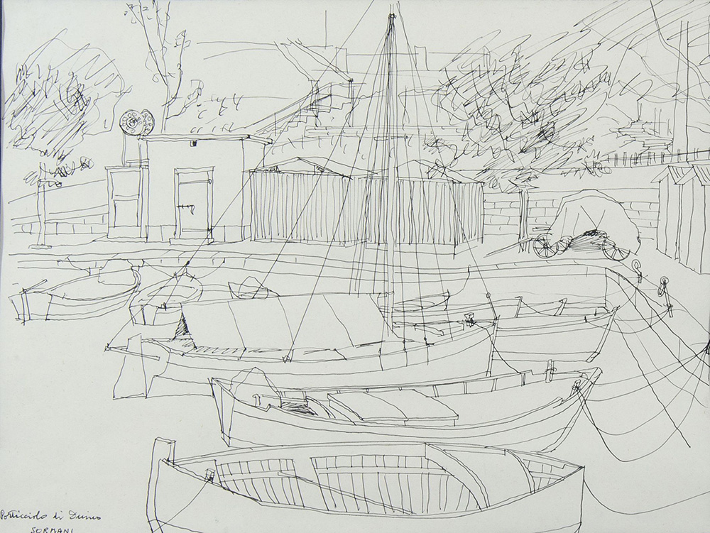 Lotto 187 | Marino Sormani Trieste 1926-1996 "Porticciolo di Duino" cm. 30x40 - china su...